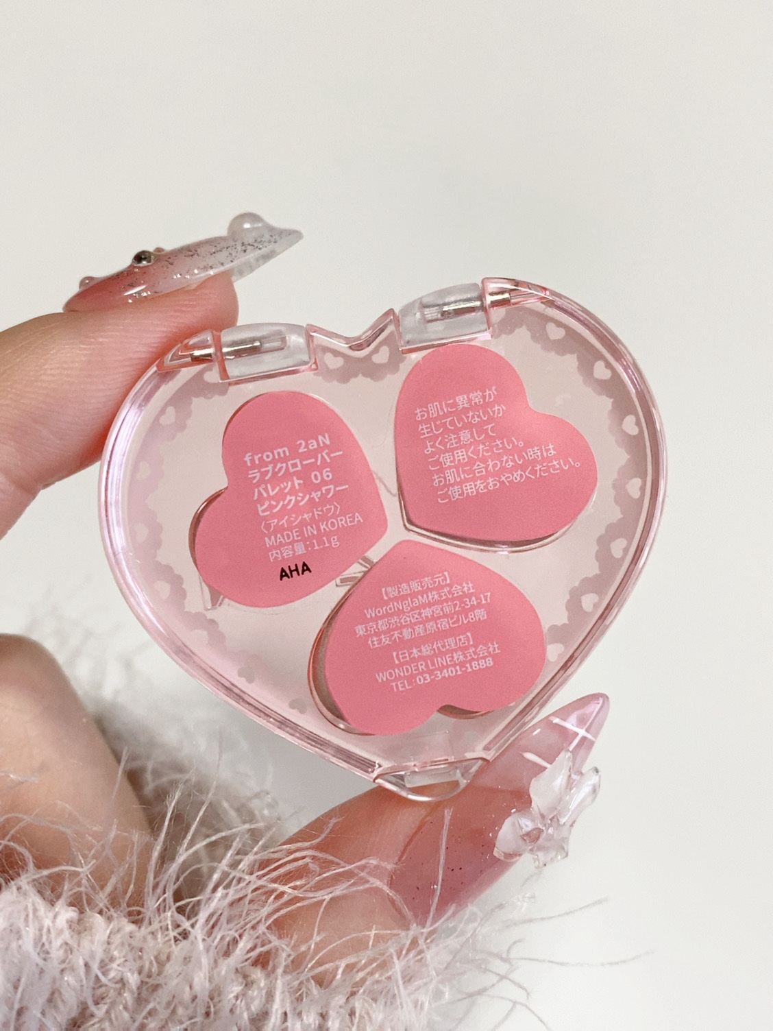 🌸from2aNラブクローバーパレット06ピンクシャワー ¥1,100(税込)🌸12月にセブンイレブンで数量限定発売した大人気韓国コスメ2aNのミニサイズコスメです✨元のサイズよりコンパクトになり、色も3色と使いやすい色味で構成されたアイシャドウになっています。今回は、初めての人でも使いやすく、もっと手軽に2aNを楽しめるをコンセプトにしているそうです。🌸使ってみて サイズは手のひらに収まるコンパクトサイズで、持ち運びに凄く便利です❣️軽く塗り直すには◎私は特にピンクラメがお気に入りで最後に瞼の中心に乗せてます💌 気になったのは、コスパと発色です💦サイズ感はいいんですが、値段が少し↑かなと💦 また気持ち発色が物足らない気がしました。ただ、日常使いもできるので色味の調整をすれば使いやすいと思います❗️私は他のアイシャドウと合わせて使用して、直すようで持ち歩いています✨ やっぱりラメが可愛い❗️