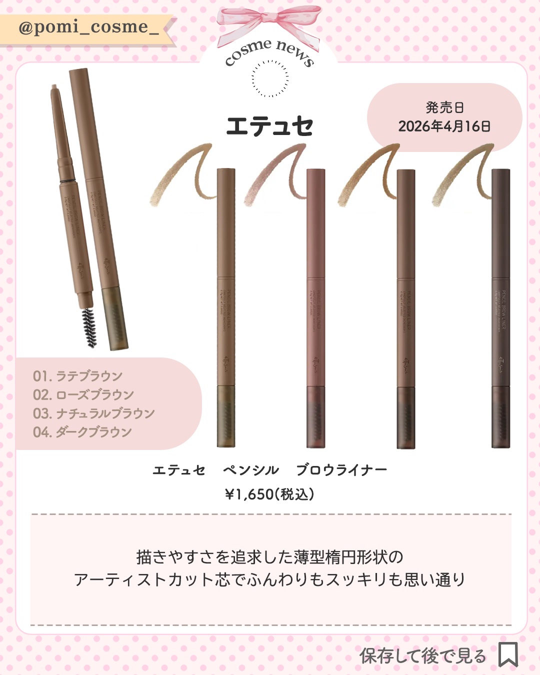 𓊆ケイトとエテュセの新作✨𓊇他の投稿はこちらから▶︎▶︎@pomi_cosme_୨୧・・・・・・・・・・・・・・・・・・・・・・・・・・・・・・・୨୧春に発売される使い勝手よすぎるアイテムまとめꔛ♡あとで見返せるように保存してお買い物の参考にしてくださいᝰ✍︎꙳⋆୨୧・・・・・・・・・・・・・・・・・・・・・・・・・・・・・・・୨୧˗ˏˋ@pomi_cosme_ˎˊ˗新作コスメ/プチプラ/美容 について発信しています𓂃𓈒𓏸フォローやいいねをしていただけるととても嬉しいです!最後までご覧いただきありがとうございます🧡ˎˊ˗#新作 #情報 #新作情報 #新作コスメ #コスメ #限定 #数量限定 #限定コスメ#プチプラ #KATE #ケイト #エテュセ #アイシャドウ #下地 #プライマー #アイブロウ #マスカラ