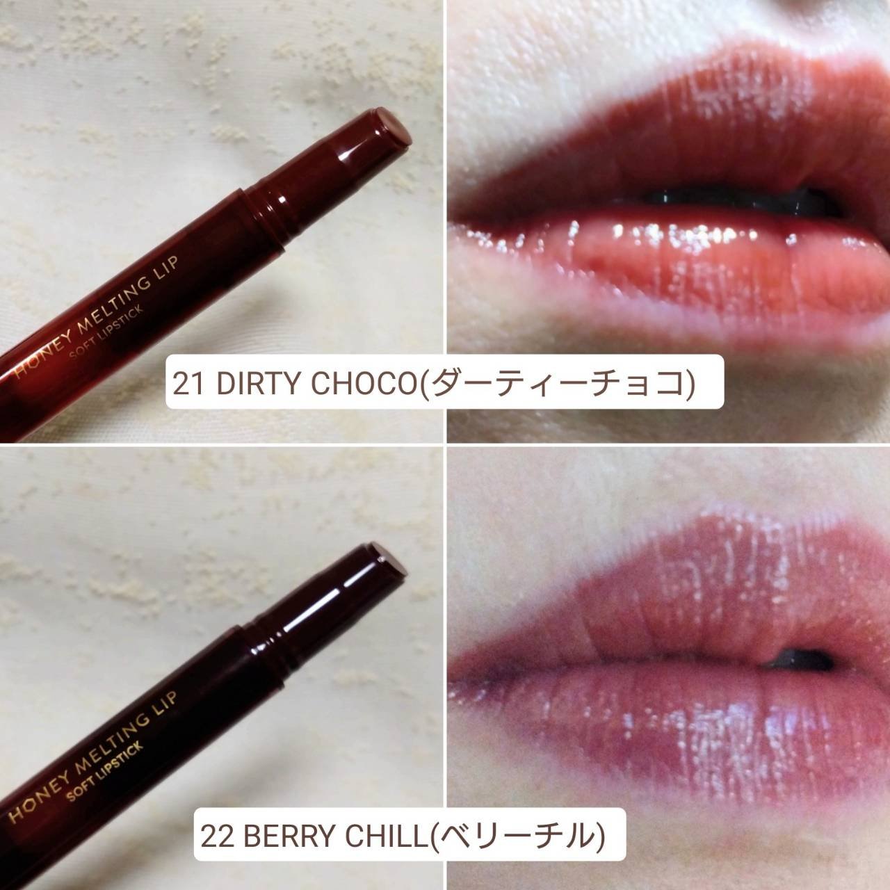 #PRこちら当選しました🎶ハニーメルティングリップの新色21ダーティチョコ22ベリーチル深みのあるカラーとねっとりとしたテクスチャ、これは可愛過ぎる…❣️ダークリップ好きにはぜひオススメしたい色味です#ネイチャーリパブリック#ネイリパ#韓国コ...