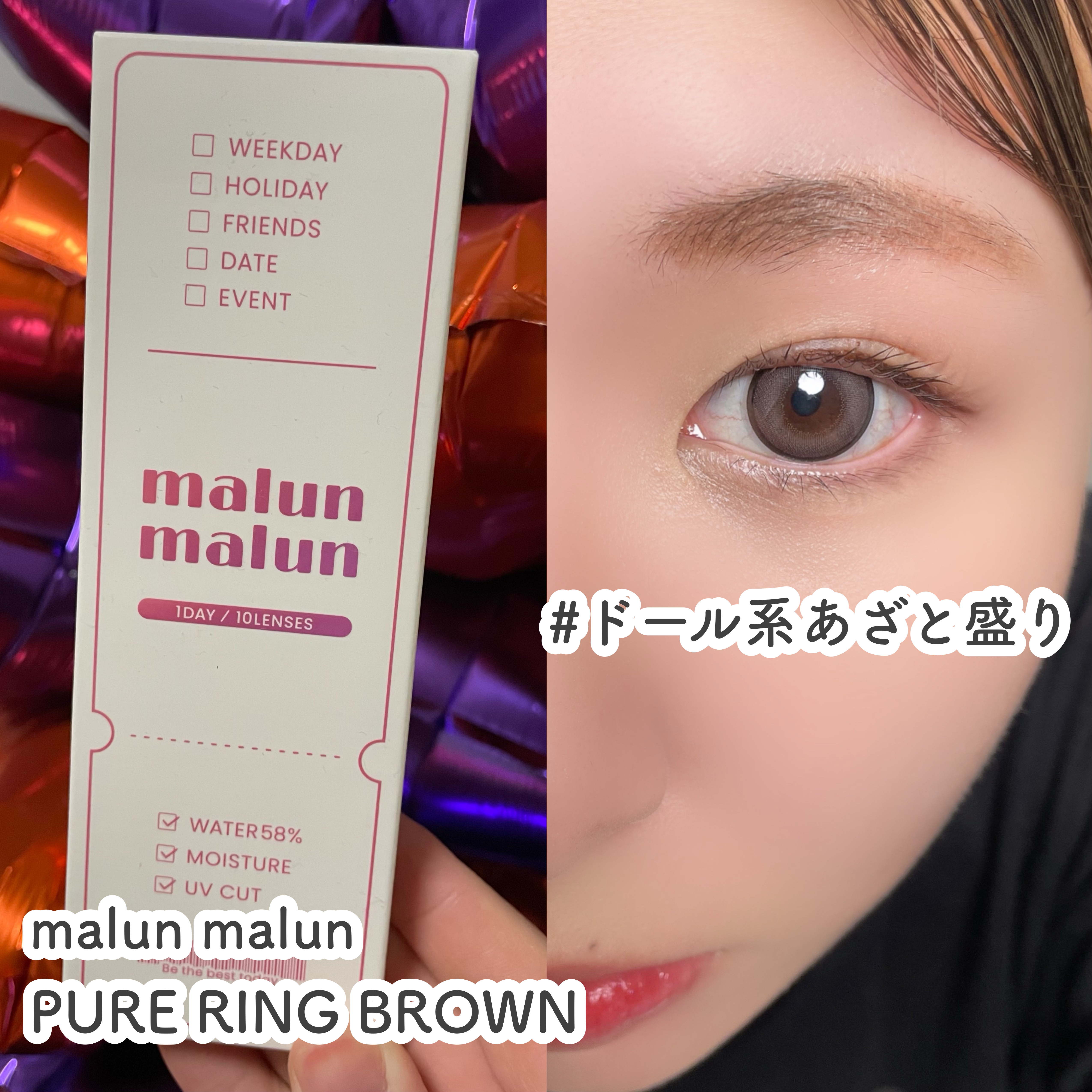 今回の新色もめっちゃ可愛い!! momohoちゃんイメージモデルの"malun malun" 太フチなのに太フチ感少なめでつけられるので大きめのカラコンが好きだけどカラコン感はそこまで出したくないって人にも良さそう♡ 瞳がぷるぷるに見える繊細なグラデーションと可愛いグレージュでかなりお気に入り!!