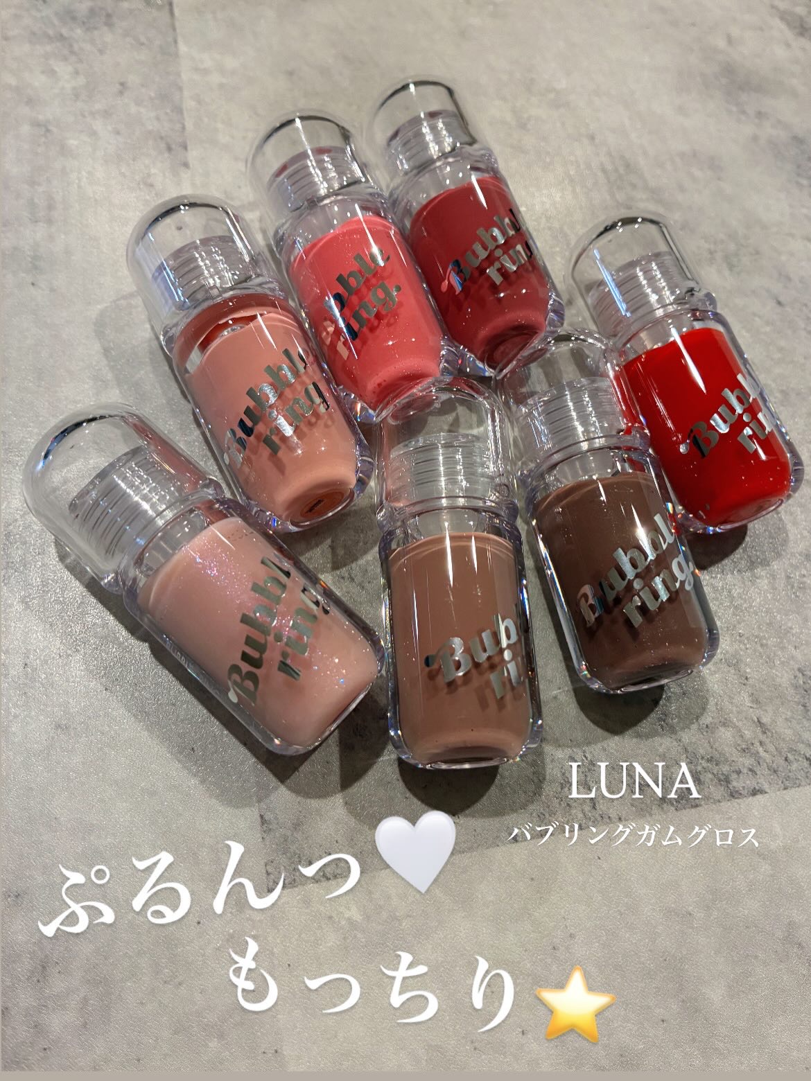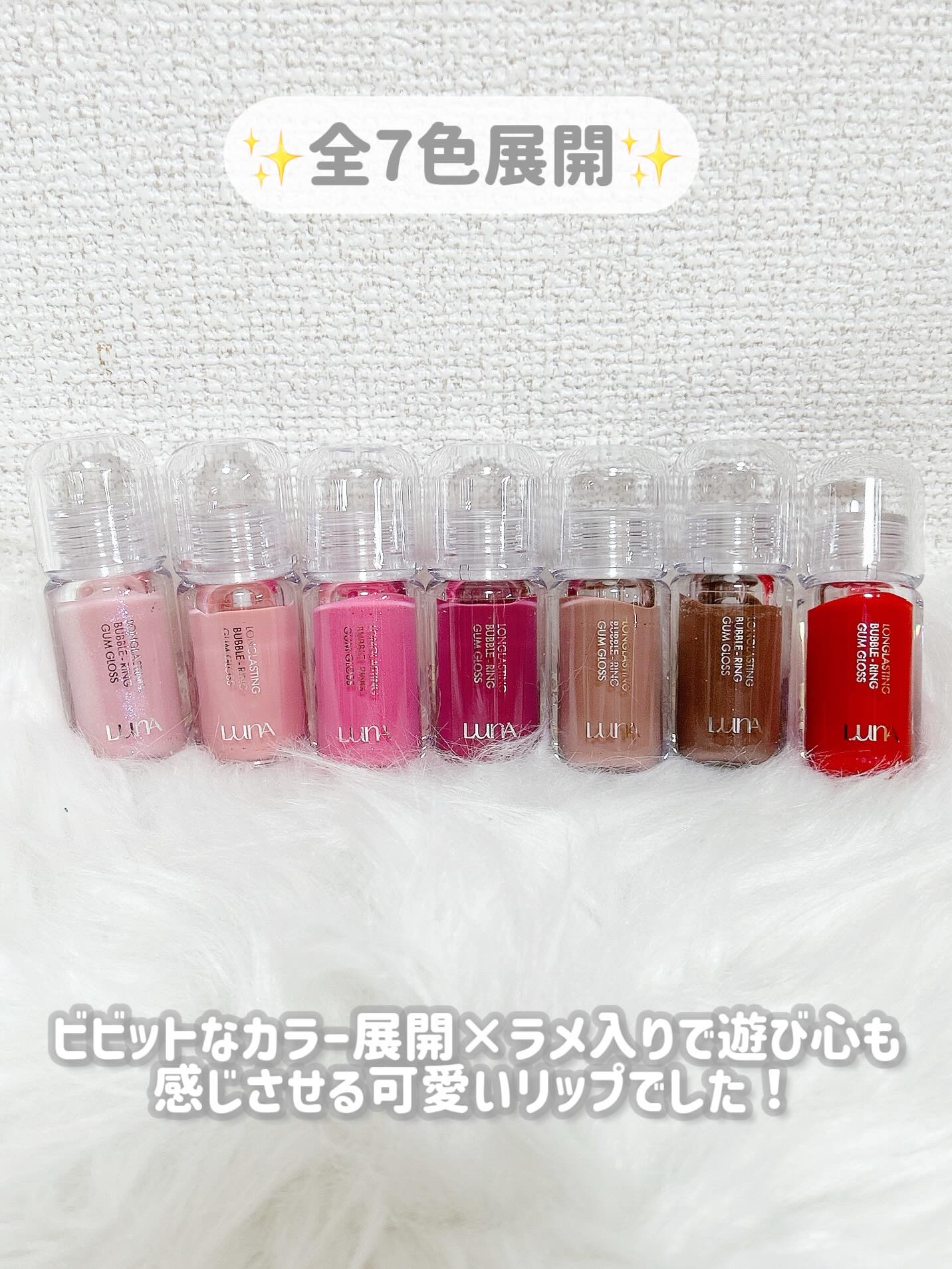 LUNA▷ロングラスティングバブルリングガムグロス【00号〜06号全色レポ】 \ぷっくりツヤ感/🎈風船のようにぷるッ🎈🍬ガムのようにもっちり感🍬☑︎ビッグチップでカンタン盛れ一度のタッチで唇にフィットベタつかず重ね塗りも不要コツいらずで初心...