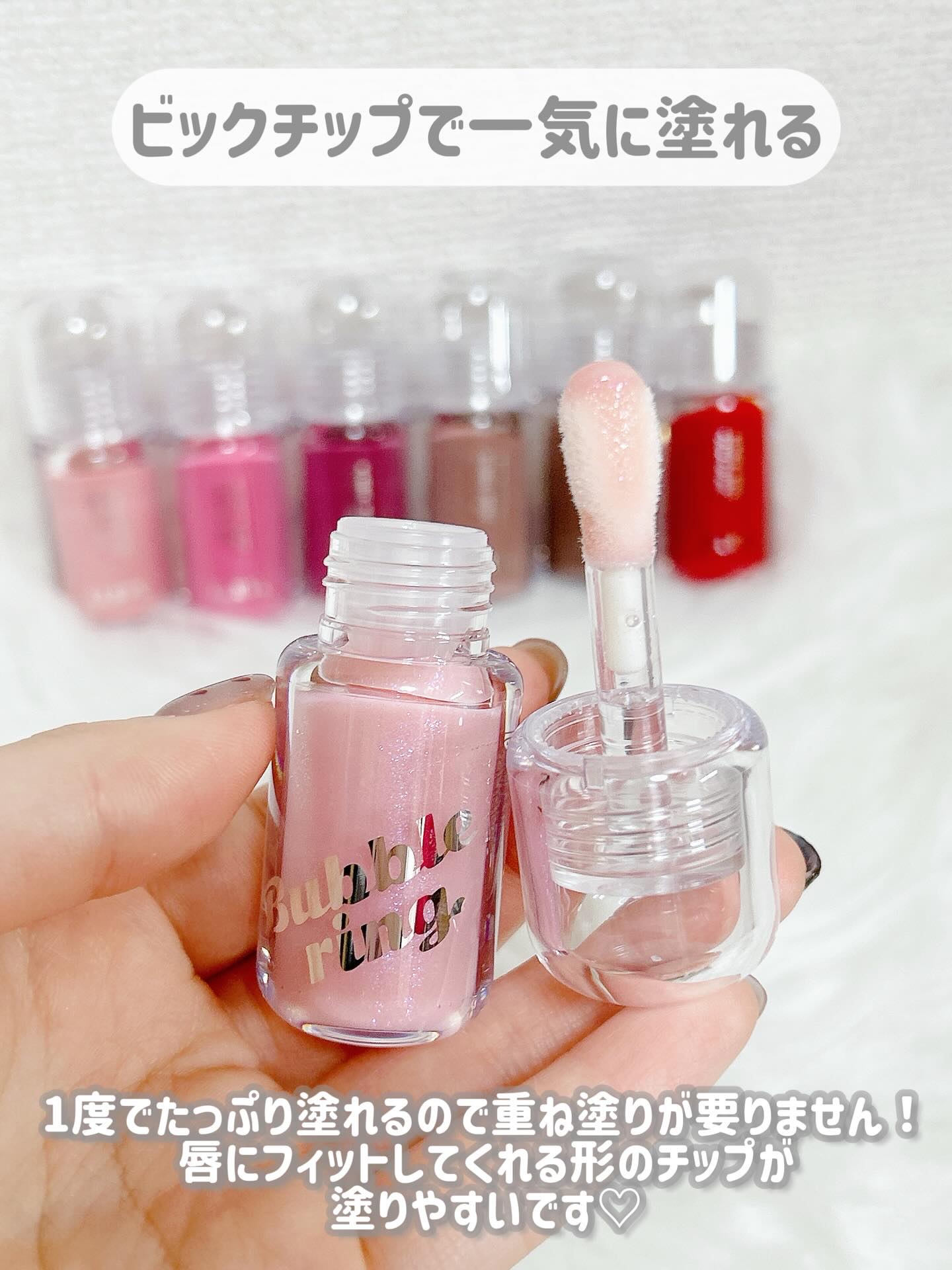 【LUNAロングラスティングバブルリングガムグロス】🫧膨らんだ風船のようにぷっくり💋ガムのようにもっちり🍬長持ちするぷるぷるもっちりリップグロス🫧ロングラスティングバブルリングガムグロスPOINT💓☑ビッグチップでひと塗りできれいになる✨️ ...