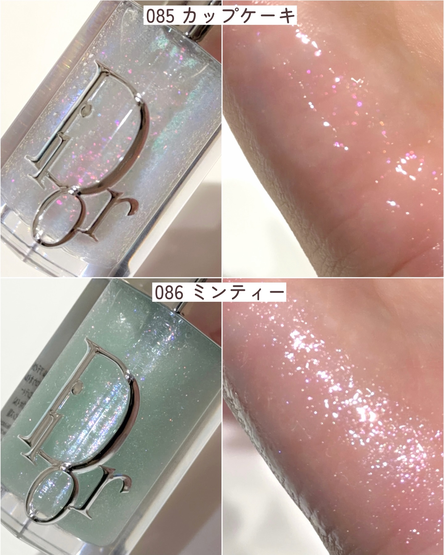 \DIOR特大速報🎀/1/1にDIORの大人気リップグロウオイルがリニューアル✨なんと全14色(うち2色は数量限定色)とカラバリが豊富に💎パケもより可愛くなって、もうたまらん♡♡♡昨日勉強会に参加し、なんと世界最速で全色スウォッチさせていただきました❤️🔥私の推しはなんと言っても“085カップケーキ”と“086ミンティー”ディオールならではの美しい宝石ラメがぎっしり詰まってるのに、なんと2色共に定番色なの👏👏👏今回のリニューアルにより、フレッシュな艶を楽しめる“ジューシーフィニッシュ”ラメが煌めく“スパークリーフィニッシュ”発色と艶を楽しめる“グレイズドフィニッシュ”の3種類の仕上がりから楽しめるように💎チェリーオイル*配合の高機能なケア処方で、塗るだけで唇がプルンプルンになるよ💋厚膜のぷっくりとしたツヤで、鏡を見るのが楽しくなっちゃう♡単色で使っても可愛いし、重ね付けしてもより可愛くてこれはもう一本に選べない😳そしてそして、ディオールアディクトから新たにフレグランスが登場🎀なんとボトルがリップ型×キャンディカラーでこれが天才的に可愛いの🥺💕香りはロージー・パープル・ピーチーの3色なんだけど、それぞれローズ、アイリス、ジャスミンのお花から作られているそう🌸女性らしいスイートな香りで、これもまたもやひとつに選べない!!全て虜になる良い香りなので是非カウンターで試してみて欲しい✨私このフレグランス全色集めるつもり🫧早くも私の2026年の初買いコスメはDIORに決定❤️🔥❤️🔥❤️🔥来年もDIOR沼から抜け出せそうにありません!(幸♡)*セイヨウミザクラ種子油(保湿成分)・・⋈・-・・—・⋈・-・・—・⋈・-・・—・⋈・-・・—・⋈・・DIORディオールアディクトリップグロウオイル全14色(うち2色は数量限定色)¥4,950(税込)ディオールアディクトロージーグロウ(オードゥパルファン)ディオールアディクトパープルグロウ(オードゥパルファン)ディオールアディクトピーチーグロウ(オードゥパルファン)30ml各¥9,460(税込)50ml各¥15,180(税込)全て2026年1月1日発売・・⋈・-・・—・⋈・-・・—・⋈・-・・—・⋈・-・・—・⋈・・@diorbeauty@diorbeautylovers#Diormakeup#リップグロウオイル#DIOR#ディオール#dioraddict