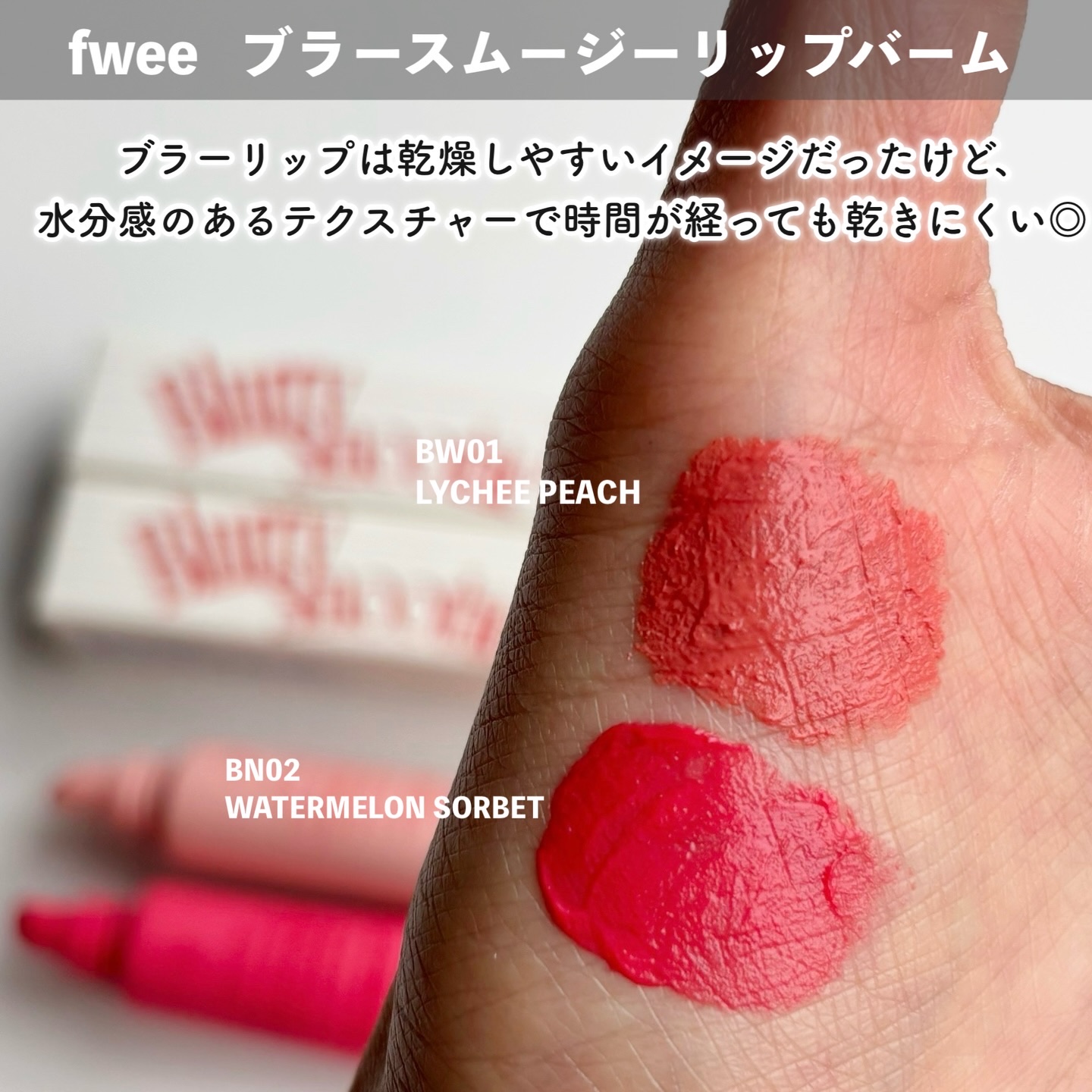 🍹fwee新作 唇の水分補給!?スムージーリップ fwee グロウスムージーリップバーム🍹バズを量産し続けるfweeからリップケアも兼ねたスムージー発想の新作が2/1より登場するので先行レビュー!🍎彩り豊かなスムージーカラー&フレーバーでジュ...