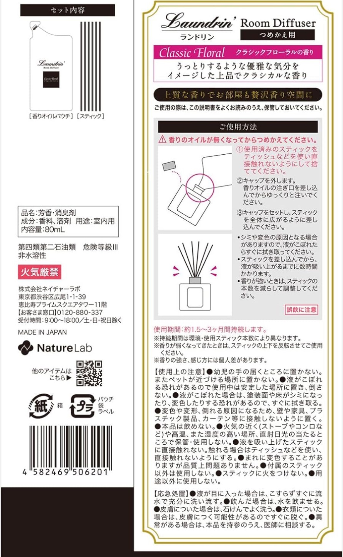 関連する記事ランドリン ルームディフューザー クラシックフローラルの香り 本体80ml