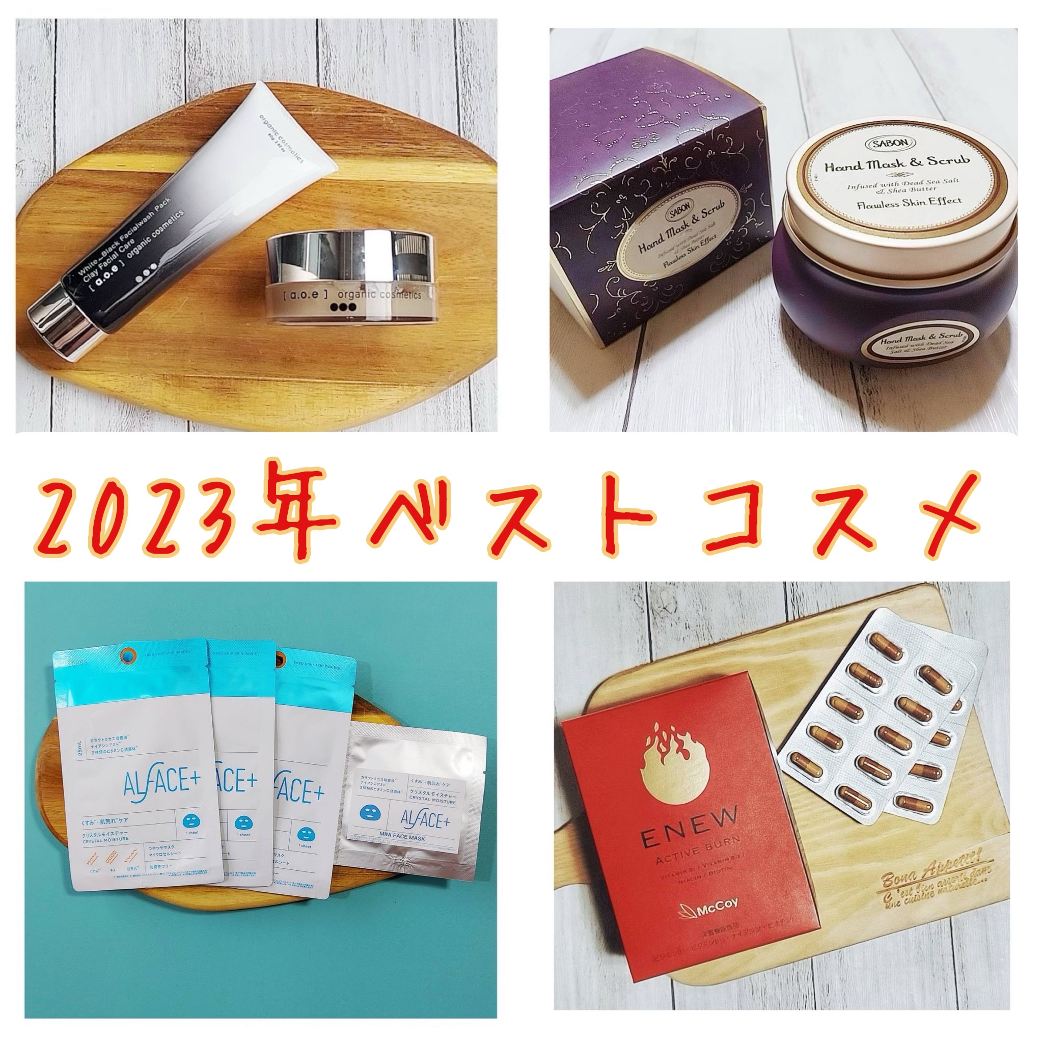 私的2023年ベストコスメ🖤2023年も提供して頂いたり買ったりして、たくさんのコスメを試させて頂きました🤗その中から今年皆さまに私がオススメしたいBEST3と番外編をお伝えします🙆♀️第3位ALFACE+クリスタルモイスチャーマスク✨️キメを整えくすみをケアする人気デパコス成分のガラクナイアシン配合!それを、税込275円の商品で実現した企業努力には脱帽🫢使用後の潤いも透明感も間違いなし🩵第2位SABONハンドマスク&スクラブ✨️今までボディ用のスクラブとハンド用のシートマスクでやっていたケアが1度で終わるように🥹スクラブの硬さや強さも丁度よく、マスクの保湿力や持続力もめちゃくちゃGood💜週1.2回程度のケアなので税込4,400円でかなりもちます☺️第1位a·o·eOrganic@aoeorganicWHITE_BLACKFacialwashPack摩擦や吸引の負荷などの肌ストレスがゼロでできる毛穴ケア、仕上がりのトーンの満足度も然ることながら、保湿力まで素晴らしい✨️その後のシートマスクの美容液をぐんぐん吸い込むお肌に🥹これで税込3,390円はもはや奇跡🖤番外編MaCoy@mccoy_nonf_officialENEWアクティブバーン今まで出会ったダイエット系、美容系のサプリでダントツ1位!運動の前とか食べる前とかじゃなく、飲む事で日常の代謝を上げる超優れもの😍一時期やめたりしましたが飲んでる期間と飲んでない期間で本当に違いました✨️180粒で参考上代税込15,120円(サロンによっては安く買える場合も🙆♀️)私の2023年ベストコスメでした🤗今年も1年たくさんのコスメや感動に出会えたのは、コスメを提供してくださったメーカーさん、イベントに招待くれる日本化粧品検定協会さんそして投稿を読んで下さる皆さんのお陰です🤭2023年、大変お世話になりました!#ベストコスメ#2023ベストコスメ#オルフェス#ALFACE#サボン#SABON#サボン#aoeorganic#エイジングケア#フェイスケア#スキンケア#ハンドケア#サプリ#コスメ#ダイエット#ヘルシー#日本化粧品検定1級#コスメコンシェルジュ#インフルエンサー募集