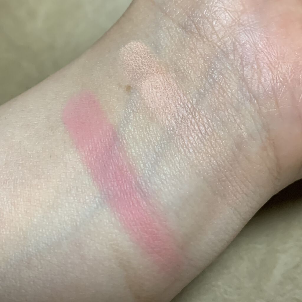 カラー 白みのベージュと大好きなモーヴピンクのかけ合わせでふわっとしたほっぺが作れる ほわっとしたチークの質感大好きなので 大好き❤ テクスチャー ツヤチークではなくマットなチーク 🦀はマットチークのふわっと感が好き😍 マットだけど乾燥はしません 2色の重ね具合でカラーも変えられるけど 🦀は全部混ぜて使うのが好き ベージュが混ざる事でナチュラルに 肌に溶けこむ💕
