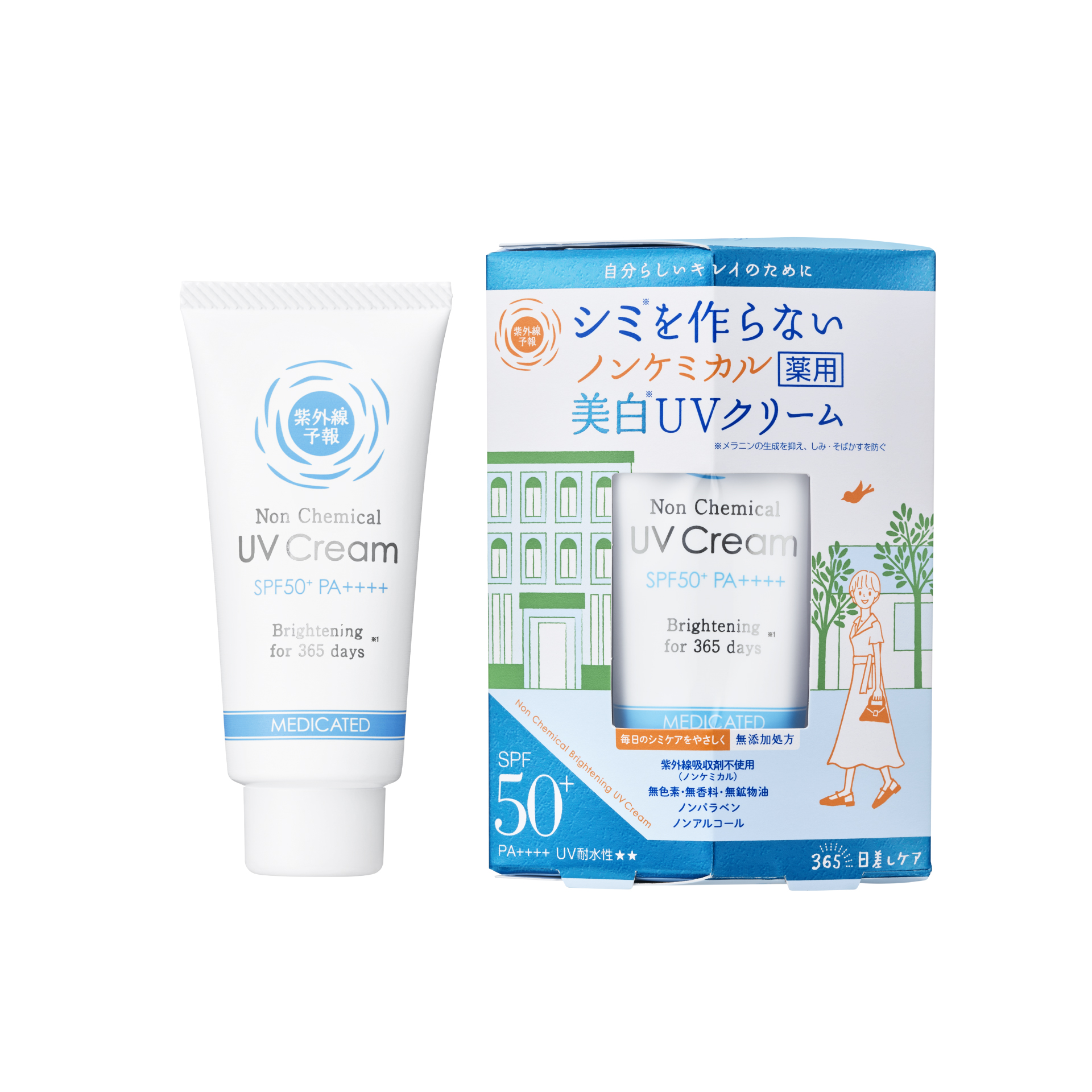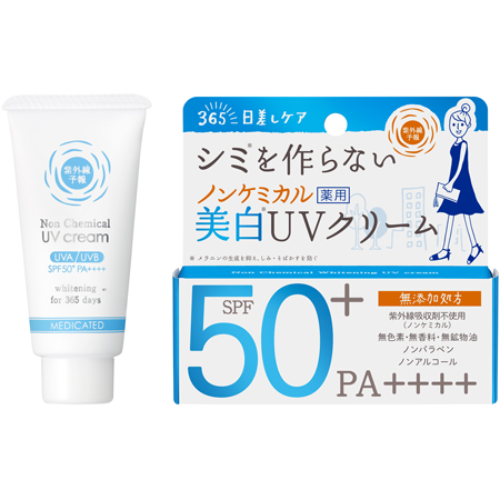 紫外線予報 ノンケミカル薬用美白UVクリームMSPF50+PA++++UV耐水性★★ 40g 2,530円(税抜2,300円) 医薬部外品こちらのアイテムは紫外線吸収剤を使用していない、メイク落としでOFFするウォータープルーフタイプの日焼...