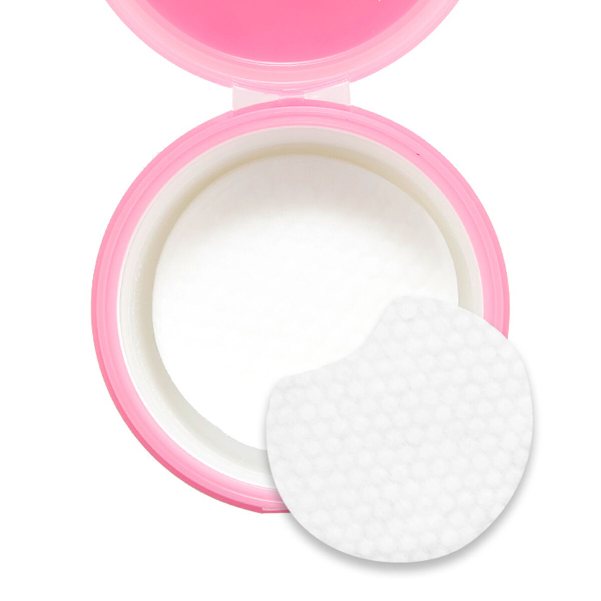 拭くだけでメイク落とし&マイルドピーリング 透明感溢れるお肌に導きます。 早速使ってみたら撫でるだけでキレイにメイクが落ちました。 パッドの凹凸が細かい部分にたまったメイク、皮脂汚れをしっかりキャッチしています。 個人的な注意点としてはピンがない事とパッドのサイズが少し小さいので濃いめのメイクの場合2枚は使うかもしれません。