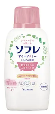 入浴剤の香りが脱衣所にもしっかり届くほどの甘い香りです。●#ソフレ・マイルドミーミルク入浴液和らぐサクラの香り●バスクリン●オープン価格(1000円以下)特徴としては・弱酸性・アルコール、パラベン、色素フリー・新生児による入浴テスト済・アレル...