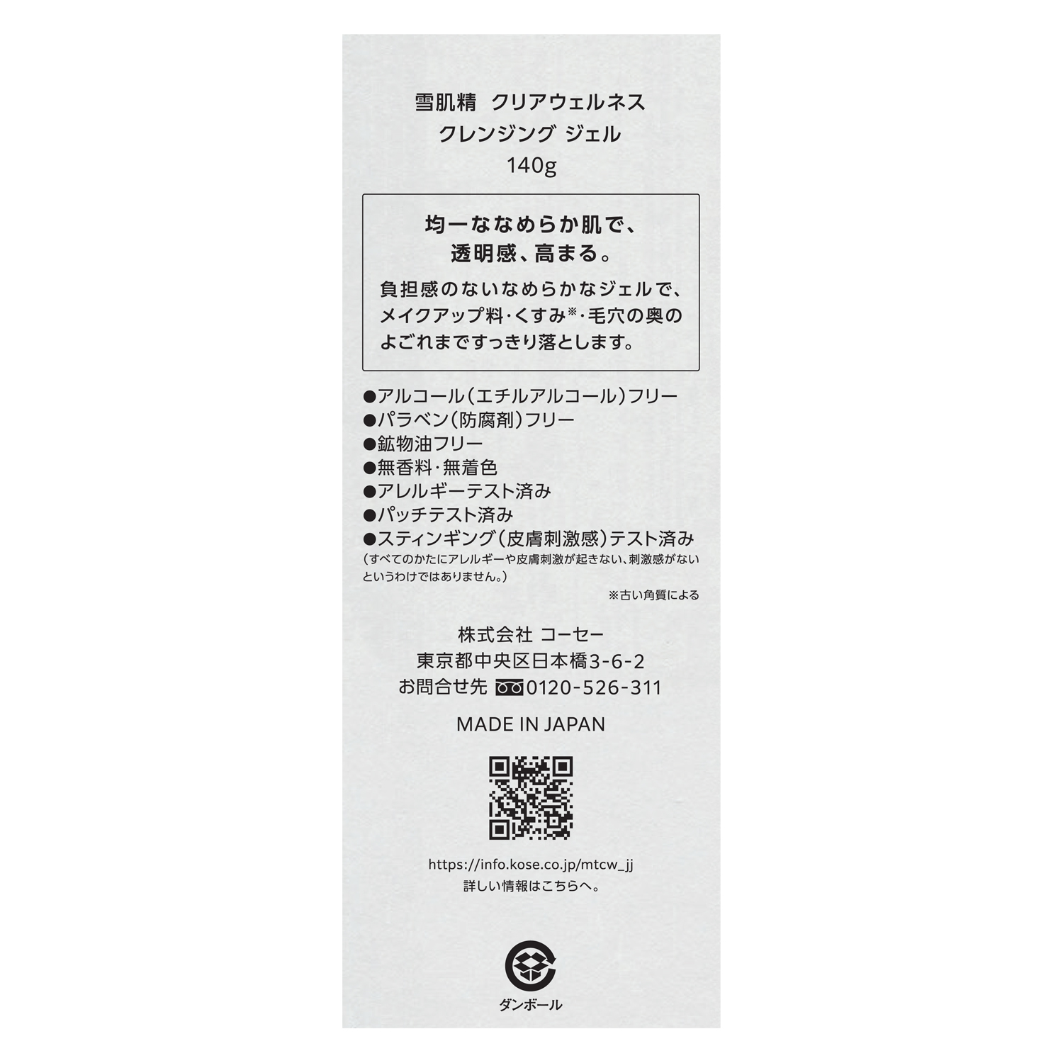 \すっきり、なめらか肌へ/雪肌精クリアウェルネスクレンジングジェル均一でなめらかな肌に透明感、ぐっと高まる。敏感肌を考えた低刺激処方。負担感のない、なめらかなジェルがメイク・くすみ・毛穴の奥の汚れまですっきりオフ!「ジェルって落ちにくいのかな...