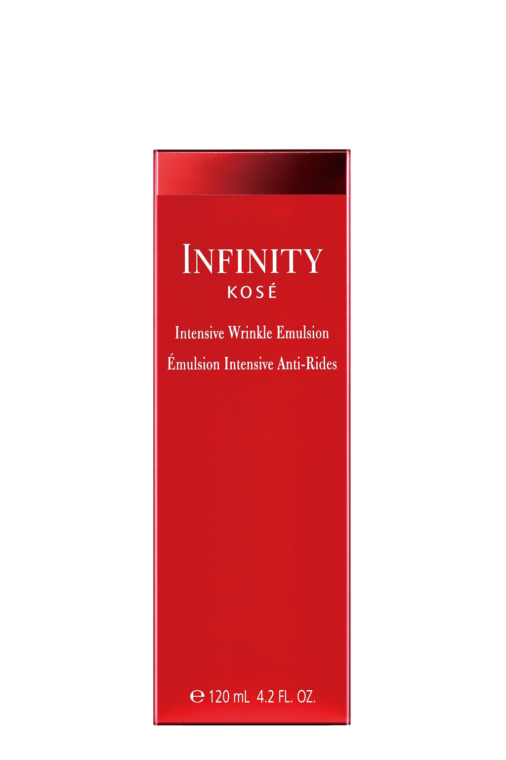 【インフィニティインテンシブリンクルエマルジョン】医薬部外品。深くのびていくシワを改善する、シワ改善乳液。コーセーのナノ化技術により、肌の素と似た生体類似成分・スキンフュージョニングオイル・美肌成分をカプセル化した「スキンフュージョニングエレ...