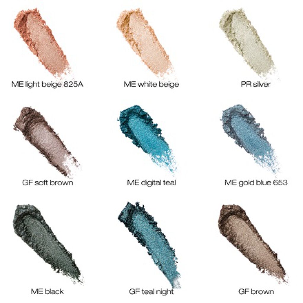 見た目は使いにくそうですが程よいパールと存在感のあるグリッター、そして真っ青ではなく少しグレーがかったブルーがとてもカッコよくて綺麗な目元を演出してくれます。ベースカラーだけでも十分綺麗なアイメイクになりますのでデイリーメイクには中段の青2色...