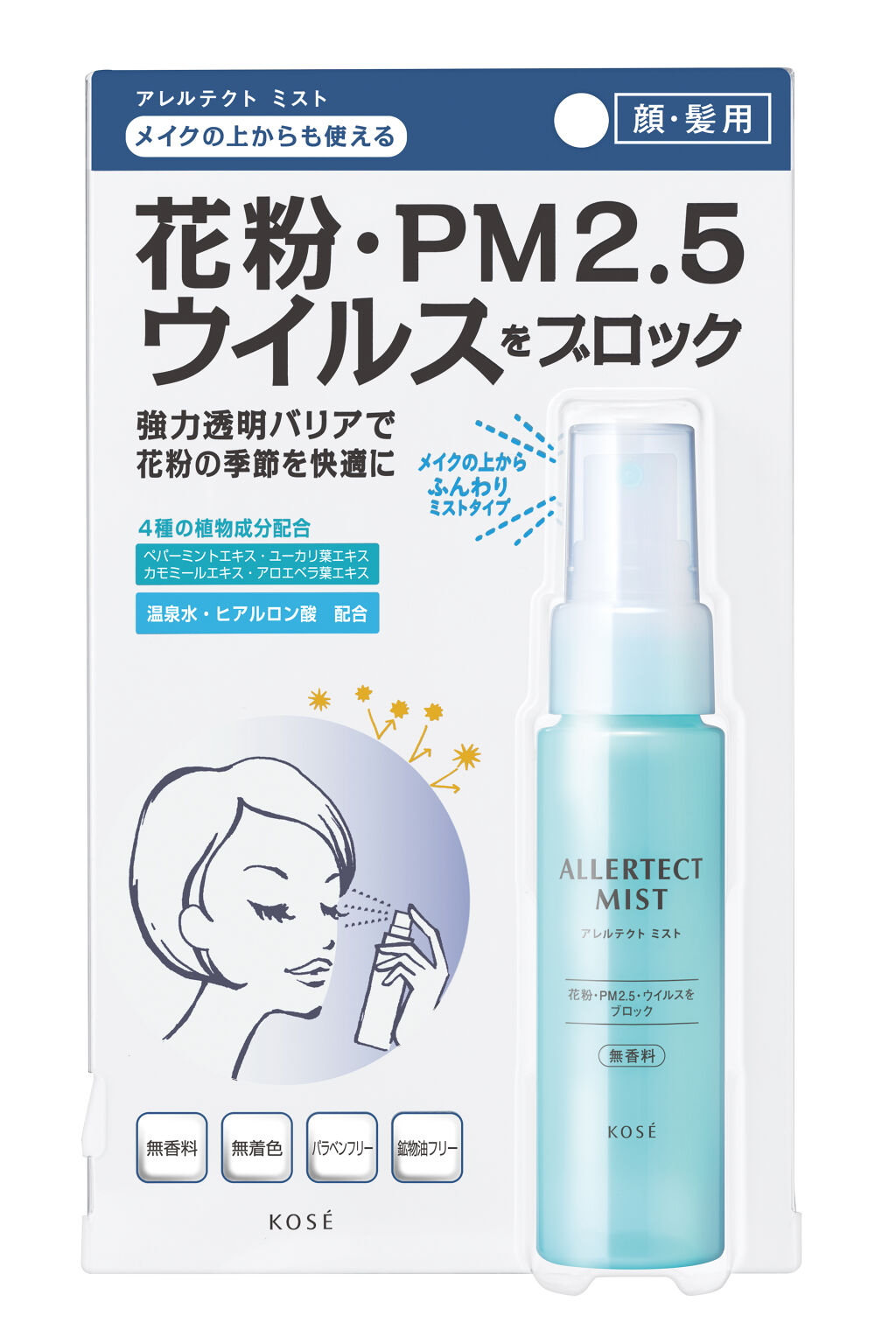 \花粉・PM2.5・ウイルスをブロック/◆KOSE◆アレルテクトミスト花粉やPM2.5、黄砂、ウイルスなどから強力なバリアで守ってくれるミスト。肌や髪への付着を抑制してくれます。メイクの上から使えるタイプなので出先でも安心して使えるし、出かけ...