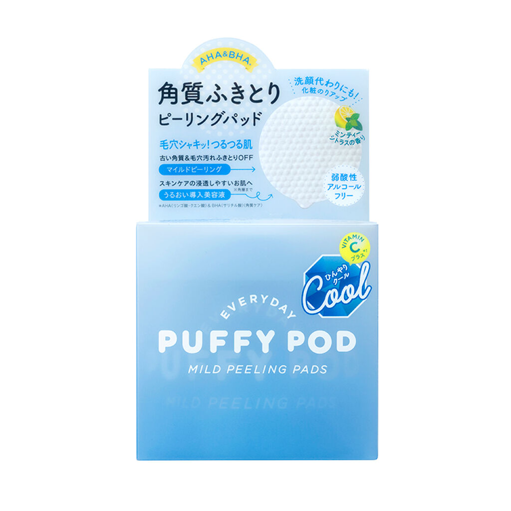 PUFFYPOD マイルドピーリングパッドCひんやりして、お肌がつるつるになります。※目元は刺激が強く感じる方もいるかもです。コンパクトなので場所もとらないし、朝はさっぱりしたいのですごく重宝しています。...