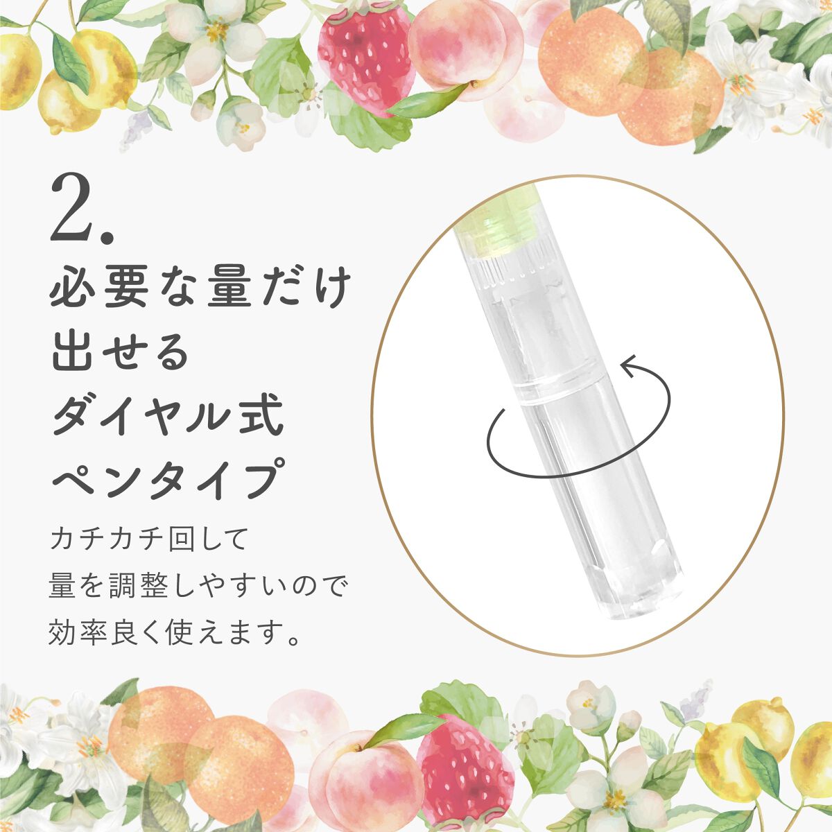 ダイヤル式でカチカチ回すだけで量を調整しやすく、ブラシタイプだから隅々まで塗りやすくなっています✒️ 爪の根元や、皮むけ、ささくれなど気になるところにも、なじませたり爪周りのケアにもいい🙌 とっても軽い使い心地のオイルなので外出先でも使いたくなるようなベタつきにくいテクスチャーです💋