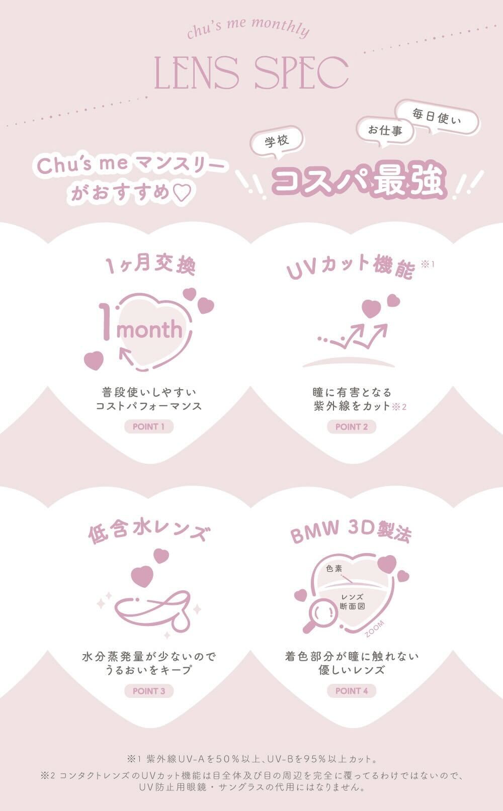 Chu'smeChu'smeマンスリーベイビーブラウン¥1,705目が乾くことも無く、1ヶ月間使用出来ました。色味も可愛くて、自然で、オフィスでも使用出来ました。また使いたいと思います。LIPPSのポイントで購入しました(*^^*)...