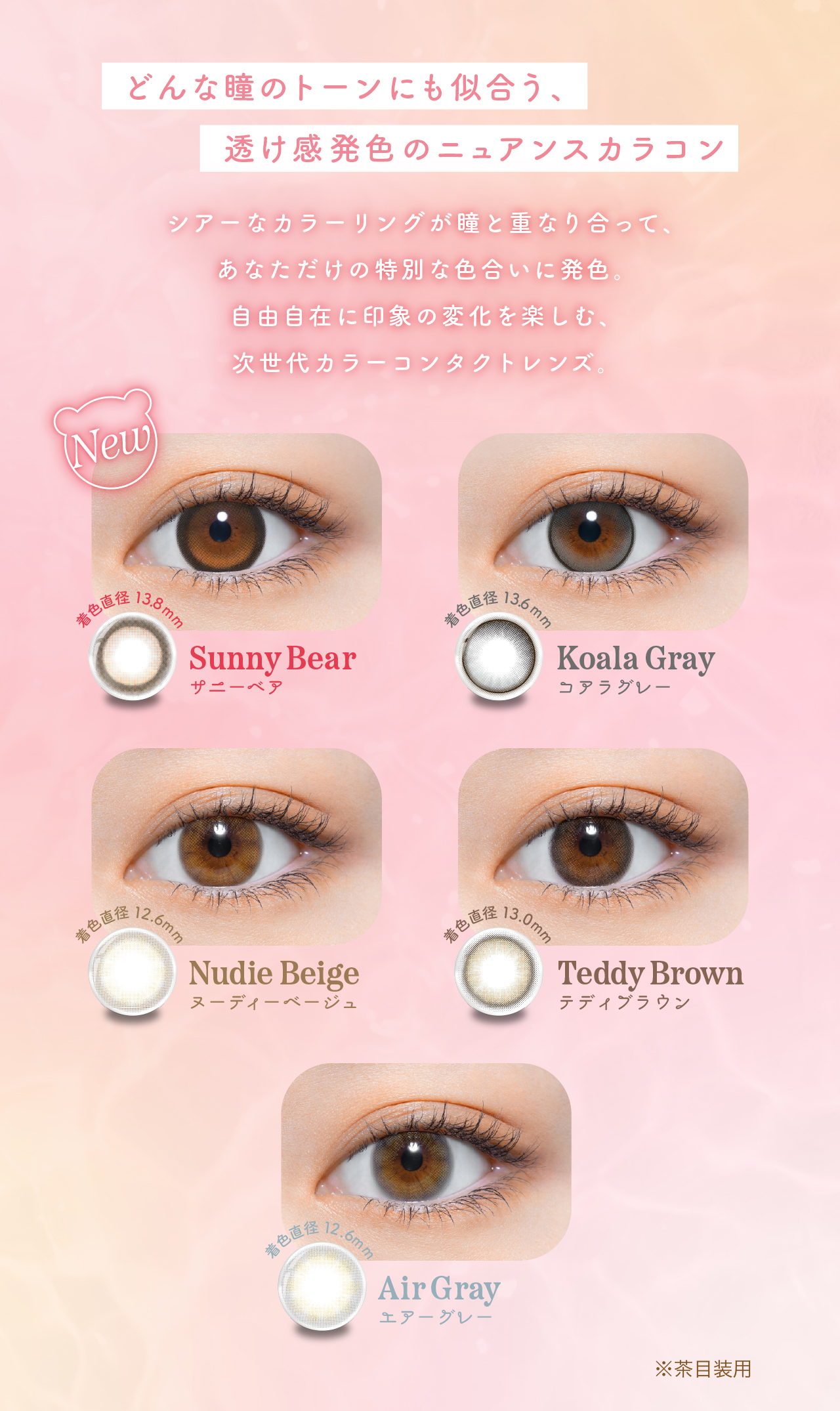うるうるくりん♡perseの新色SunnyBearが可愛いっ!新色は「くまさんみたいにうるうるくりんっ水光ブラウン」がコンセプト!直径14.5mmのperse初大きめデザイン!はちみつをひとさじ入れたような甘くとろける水光ブラウンです♡くりっ...
