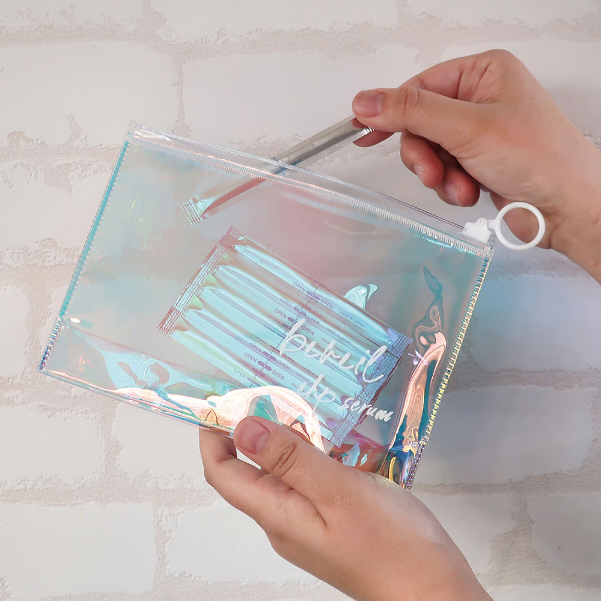 ややまつ毛の長さが以前よりも出て来た感じが自分のなかではあります。 個包装になっているので、子育ての忙しいなかでもさっと取り出して使い終わったらそのままほいっと捨てれるのでスキンケアとしても使い勝手がよいのが嬉しく思います。 専用のオーロラポーチもおしゃれで可愛いので、使い終わったあとは小物入れとして使っています