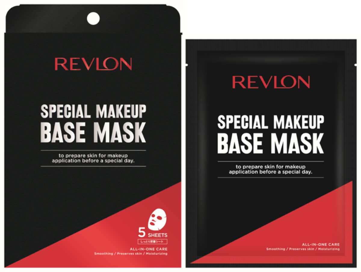 REVLONのメイクアップ発想のシートマスク『SPECIALMAKEUPBASEMASK』1箱(1枚入(28ml)x5袋)特別な日の朝は、いつもよりもメイクが映えるお肌に整えたい!そんな"メイク映え"を叶えるベースメイクのためのオールインワン...