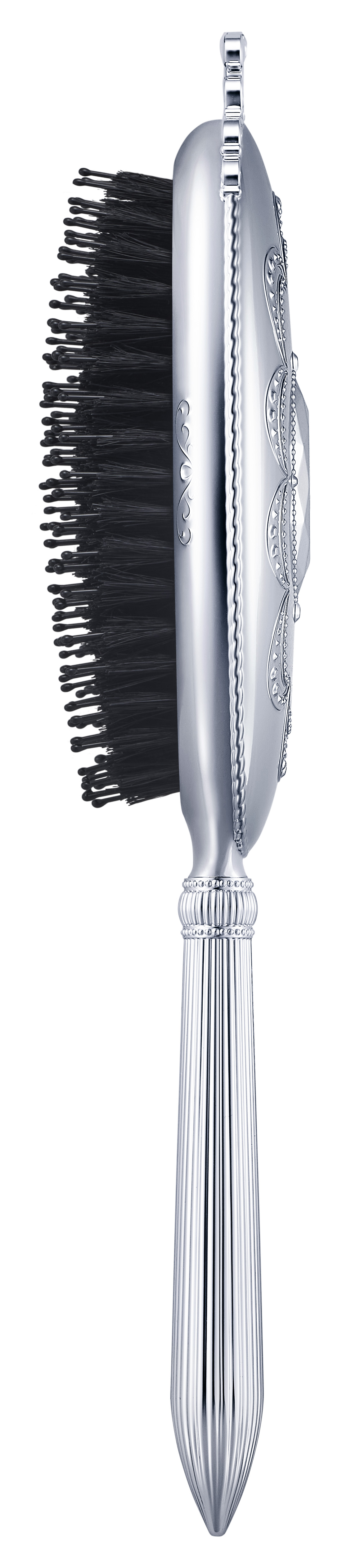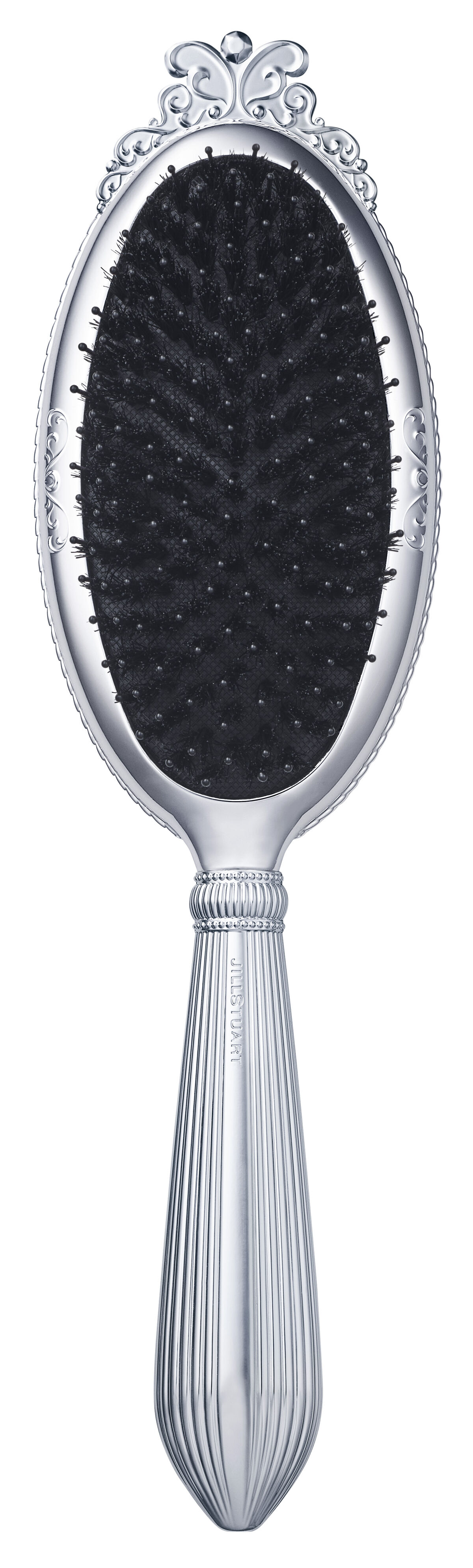 まるで光を纏ったような、輝くツヤ髪へ。 髪をとかすだけで、美しくまとまるヘアブラシ。 密度の高いミックスブラシで髪をとかすことで、キューティクルがととのい、髪表面をなめらかに仕上げ、光がキラリと反射する美しいツヤ髪を叶えます。 ナイロン毛が頭皮に心地よい刺激をあたえるため、頭皮のマッサージにもお使いいただけます。 背面はJILL STUARTを象徴するクリスタルと華やかなスカラップ型のネックレス、持ち手部分はヴィンテージのタッセルをイメージ。