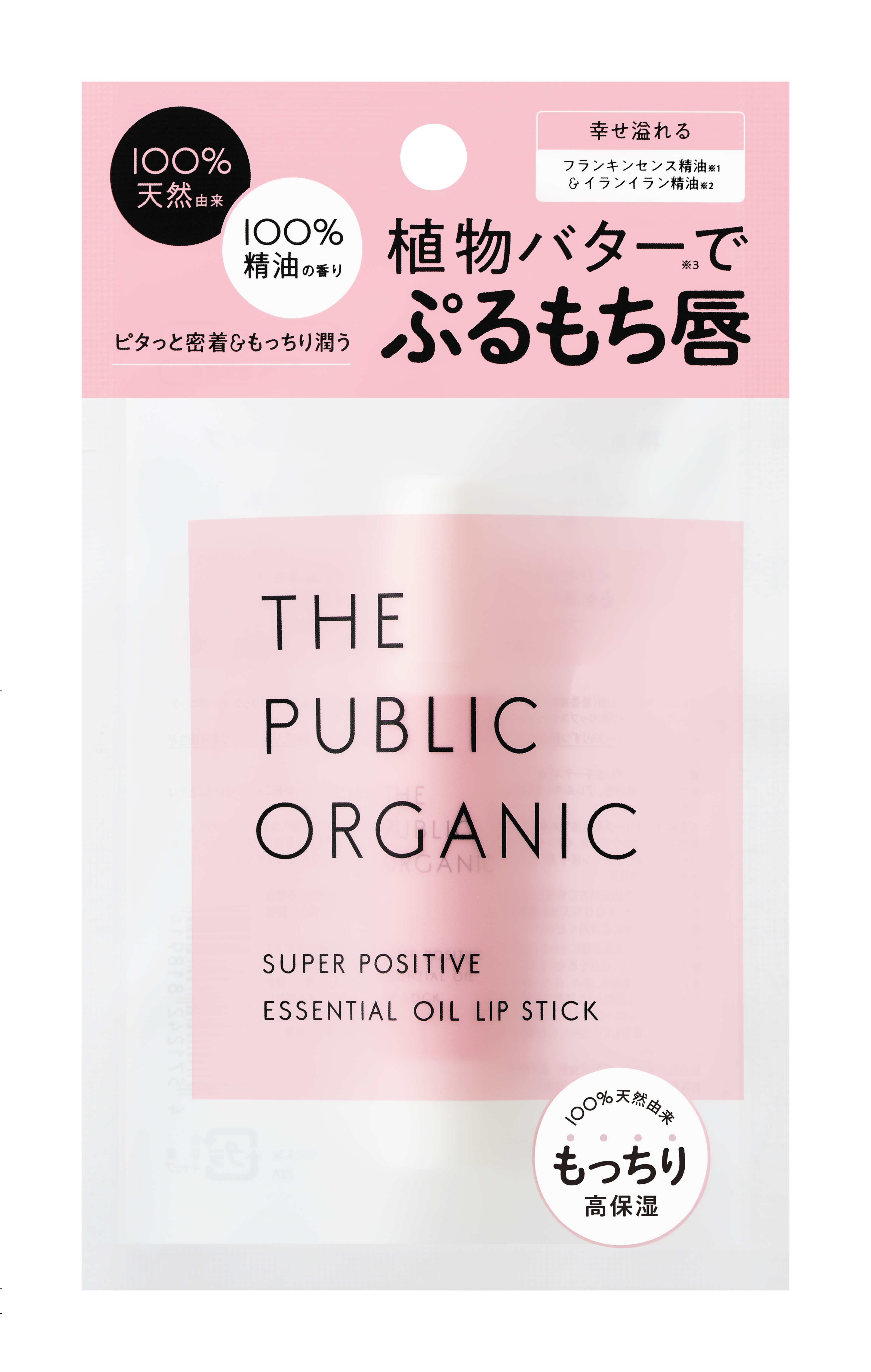 大人気の保湿リップがリニューアル! ザ パブリック オーガニック 精油 保湿リップスティック “シアバター2倍配合で濃密度UP” 甘美なフローラルウッディ調の香り 乾燥した唇に体温でとろけて馴染み、内側から潤う唇へ もっちり唇をキープ オレイン酸とステアリン酸を豊富に含む保湿力の高いこっくり植物バター。