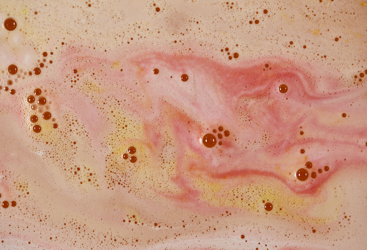 ビッグサイズのプディングの形がかわいらしいです 中の空洞にピンクに色づけたシーソルトの粒が入っています 振ると音がするので聴覚でも楽しめるバスボムです シャンパンにオレンジジュースを加えたカクテル「バックス・フィズ」をイメージした香りだそうです ゴールドのラメが入っています シーソルト配合:肌を引き締めてツヤを与えてくれます スイートオレンジオイル配合:甘く爽やかな香り、肌を引き締めながらツヤを与えてくれます ライムオイル:シャープで少し苦みのあるシトラスノートが特徴で、お肌を引き締めてツヤを与えます