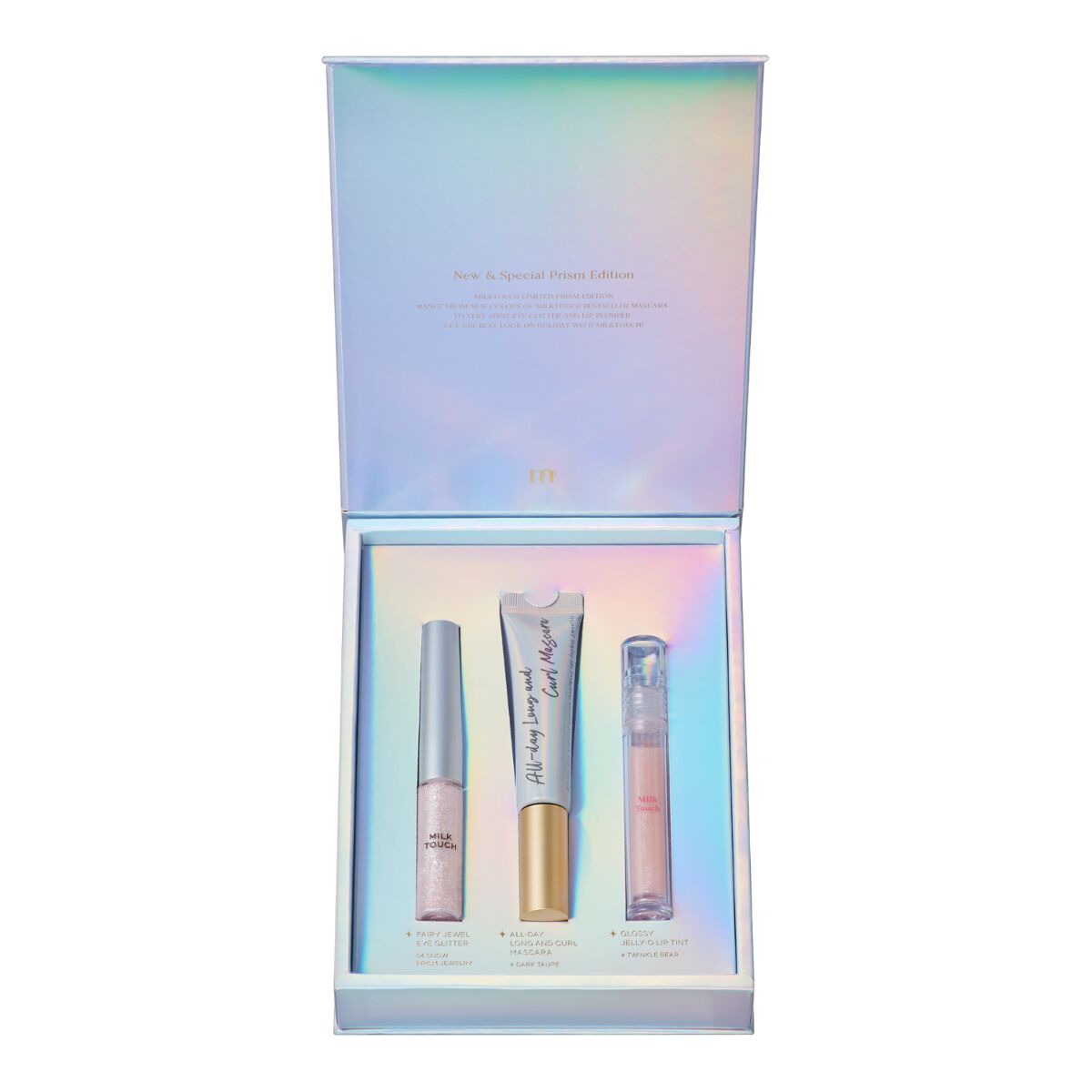 ミルクタッチ初となるコフレは、日本限定色の3アイテムが入っています💞 オールデイロングアンドカールマスカラ #Dark Taupe(日本限定・限定カラー) フェアリージュエルアイグリッター #Snow Prism Jewerly(日本限定・限定カラー) グロッシージェリーオーリップティント #Twinkle Bear 光の角度によって多彩なカラー・ラメの変化を楽しめるミルクタッチの数量限定 Prism Edition SET🎅🎄 クリスマスデートやパーティーにぜひ使って欲しい可愛さ