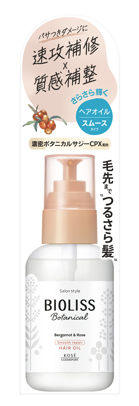 1本でダメージ補修もナチュラルなスタイリングまで叶えるアウトバストリートメントになります。 ・奇跡の果実サジーオイル配合 ・ボタニカルの恵みを凝縮し、ダメージケア&まとまり持続 ・デイリーダメージから髪をまもり、きれいな髪色長持ち ・天然香料を使用したベルガモット&ローズの香り SSビオリス ボタニカル モイストリペアヘアオイル 乾燥が気になる髪にオススメ 風のように軽やかで輝きまとうまとまりつづくつるさら髪へ SSビオリス ボタニカル スムースリオペアヘアオイル 特に傷んだ髪に 濃密うるおいヴェールで包み込みまとまり続くうるつる髪へ 使い方は… セミロングで2プッシュを目安に手に取ります。 毛先などダメージが気になる部分を中心になじませます。 濡れた髪でも、乾いた髪でもどちらでも使えるそうです。 ドライヤー前に2プッシュ、コテやアイロン前に1プッシュ、スタイリングの仕上げに1プッシュ使いがオススメだそうです。 どちらも髪になじませやすいテクスチャーで使いやすかったです。