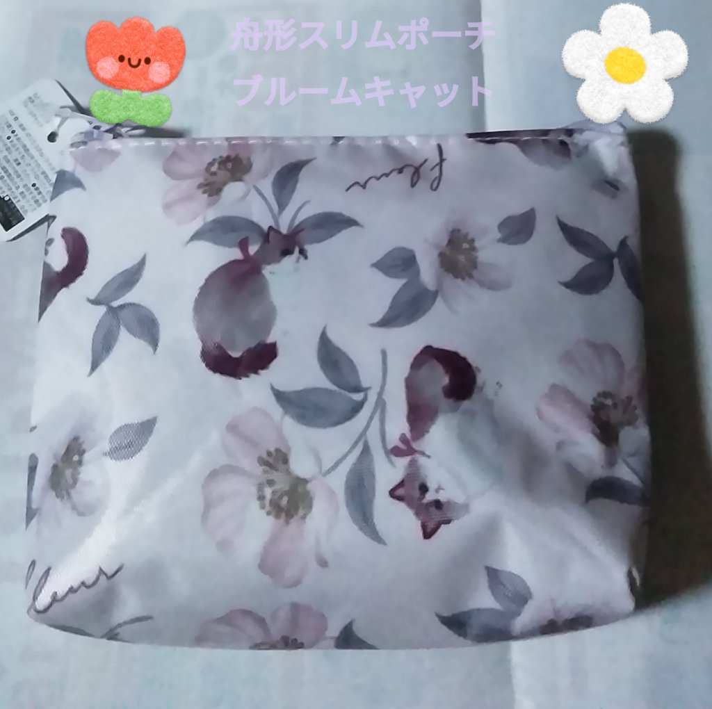 こちらは、同じ柄でボックスポーチもありました。 大事なものを入れておく用のポーチとして使おうと思い購入しました。 目薬とか鎮痛剤とか細々としたものを入れて持ち歩きたいです。 本当に猫柄はスルーしたくないし、見かけたら買ってしまいます。 汚れたとしても100円なので気にならないし何より持ってて嬉しいので🖤