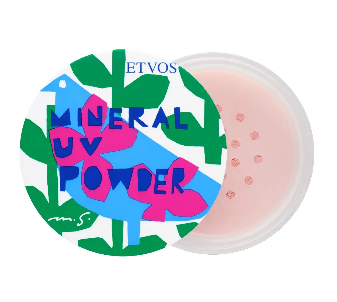 毎年パッケージのデザインが変わるETVOSのミネラルUVパウダー❣️ 2024年バージョンはハデなカラーで夏にピッタリ🍉 SPF50PA++++ブルーライトもカット 8つのフリーでノンケミカル↓ クレンジング不要 付属のパフはモチモチで肌触りがいいです。