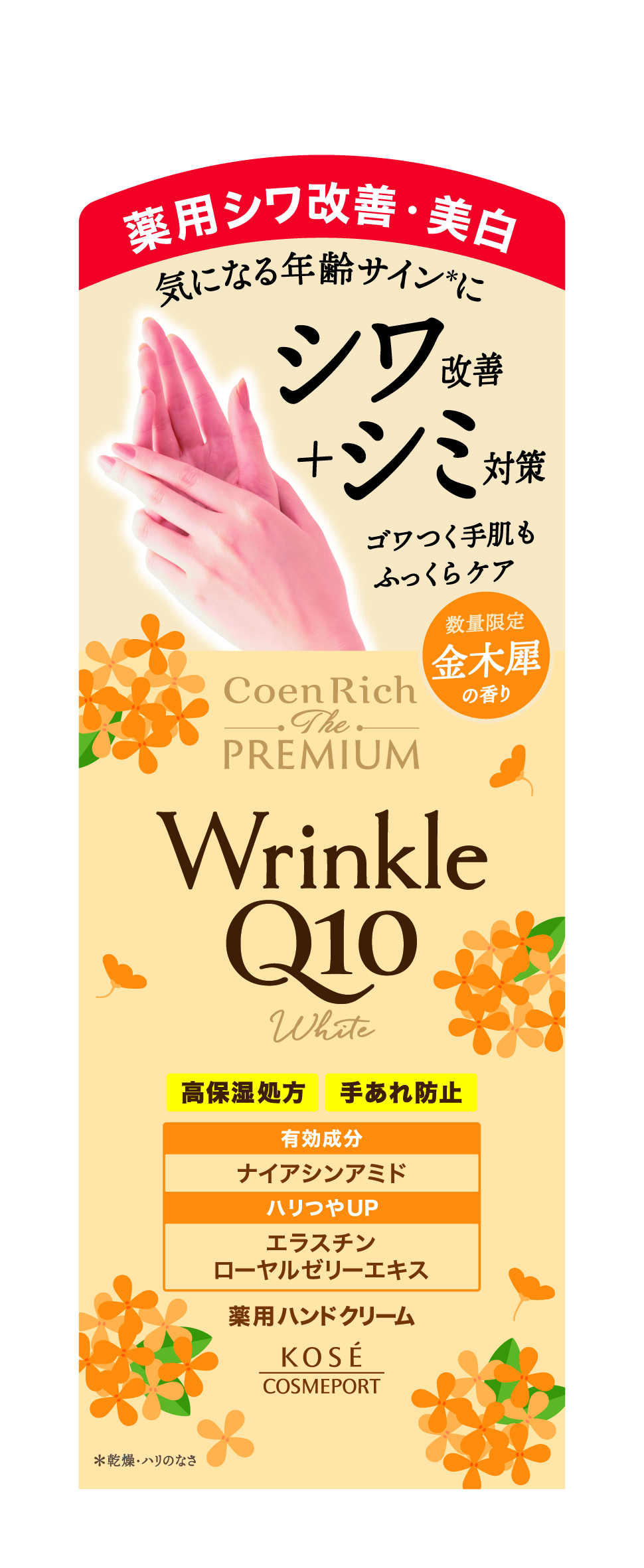 香りやベタつきにくさなど使用感を紹介!コエンリッチQ10 コエンリッチ ザ プレミアム 薬用リンクルホワイト ハンドクリーム 金木犀の香り 【医薬部外品】