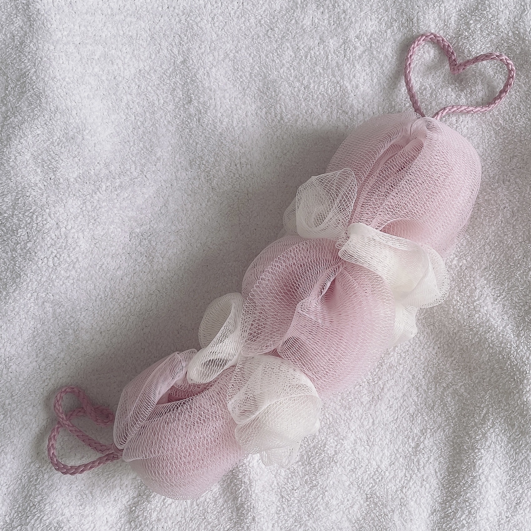 THREEPPYシャワーボール三連 ピンク¥220ボディブラシが古くなってきたのでブラシではなくシャワーボールに変えてみました🧼少しの石鹸でモコモコ泡立つので優しく泡で体を洗うことがでします🫧吊るしておけて水切れが良い○ピンクと白での見た目も...