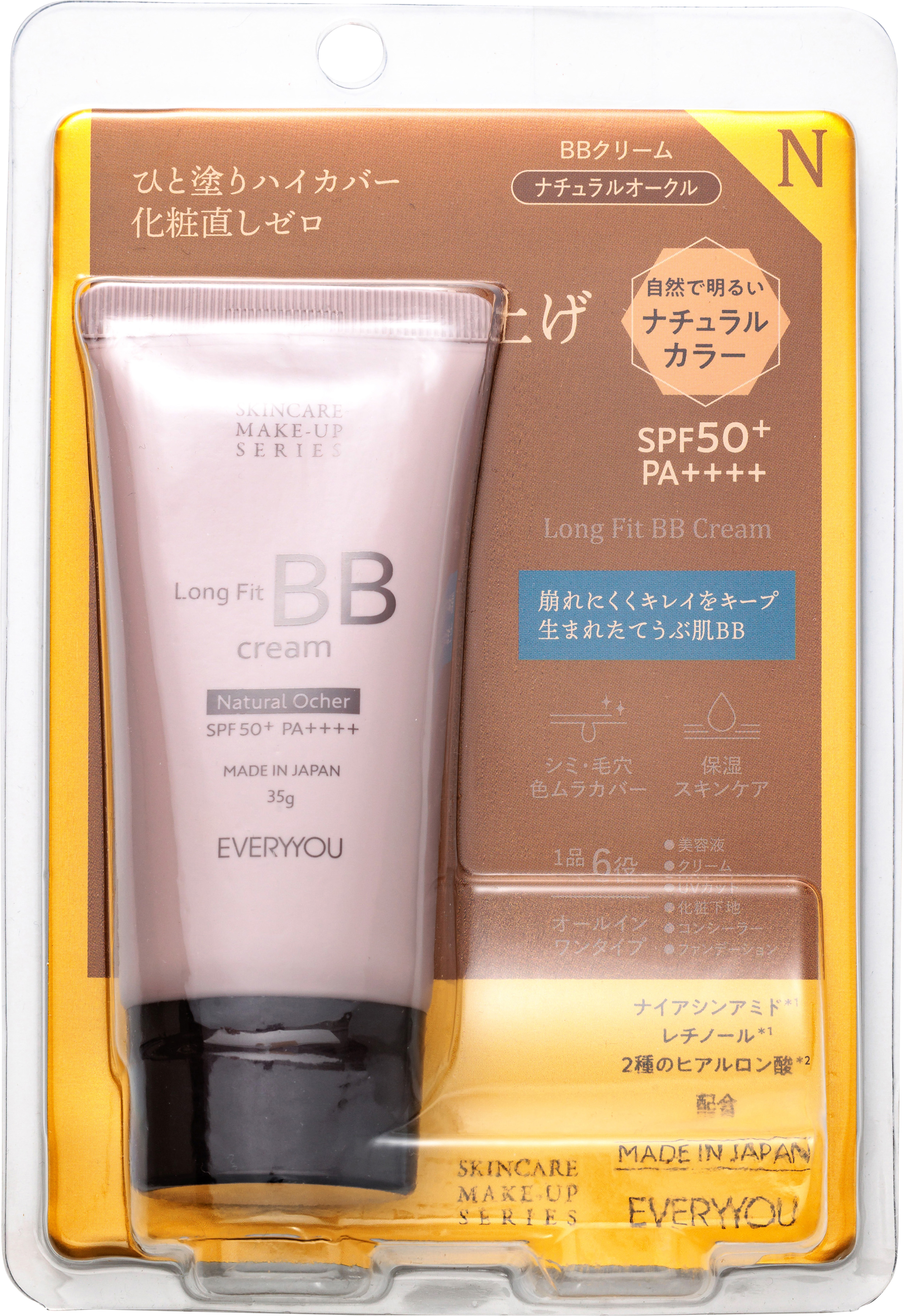 EVERYYOUエブリユー ロングフィットBBクリームひと塗りでハイカバー、化粧直しゼロのシルキーマット肌へスキンケアからベースメイクまで、朝の時短を叶えるオールインワンBBクリーム。美容液・クリーム・日焼け止め・化粧下地・コンシーラー・ファ...