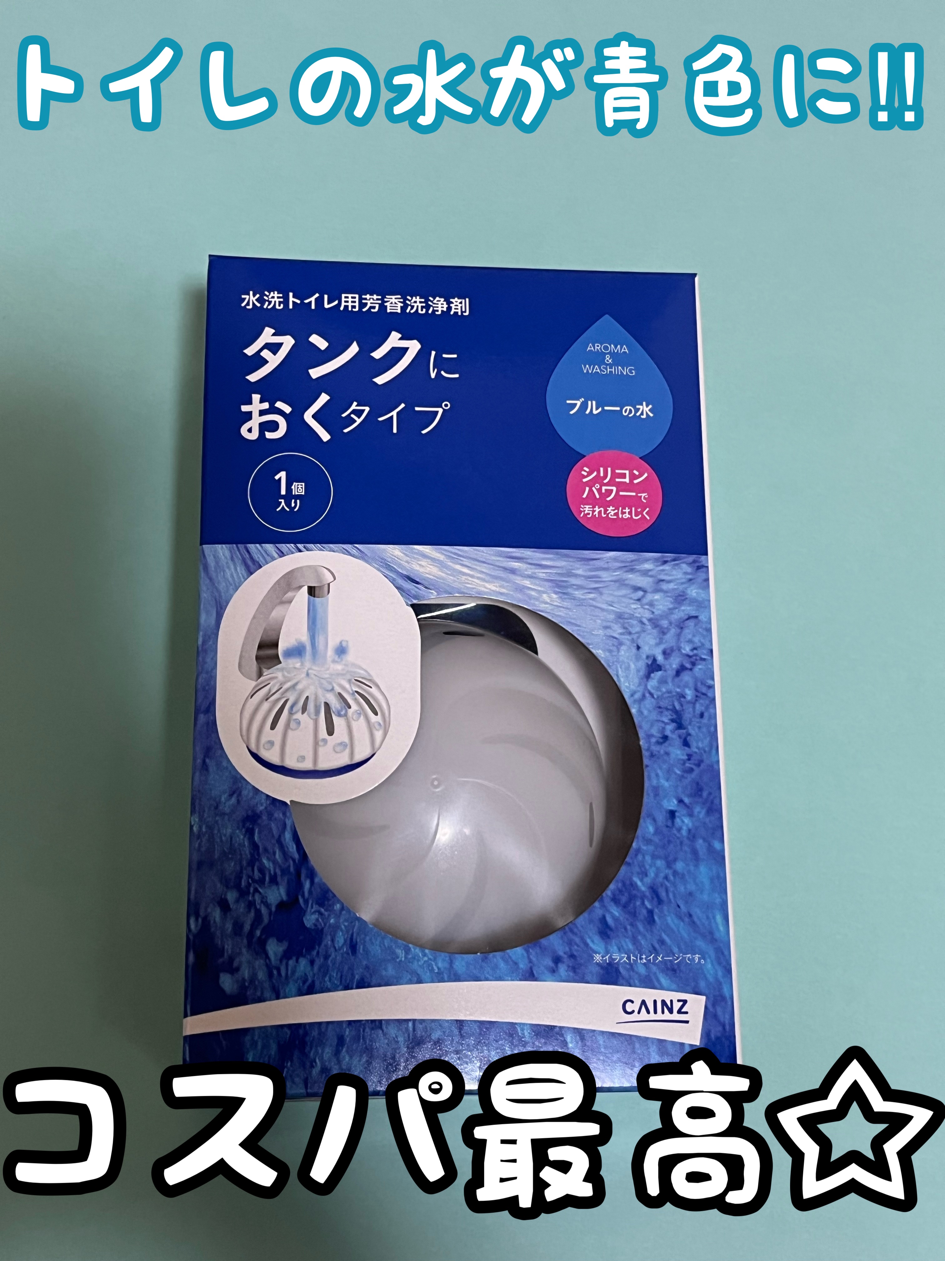 トイレの水の色がブルーに‼︎ 4人家族で1ヶ月持って98円だったので、コスパ最高です🌷 ●界面活性剤を含んだブルーの洗浄液が便器のしつこい汚れをパワフルに洗浄。 ●水を流すたびに優しいフルーティな香りがトイレに広がります。 今まで他の使ってたけど、毎回だと高いし割とすぐ終わっちゃうから、この商品に出会って最高〜という感じです✨