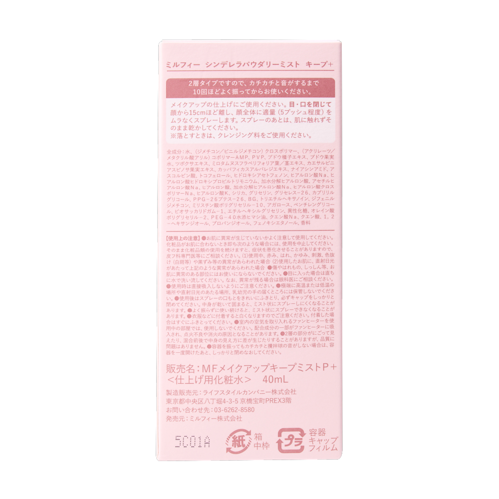 夏向けキープミストMilleFéeシンデレラパウダリーミストキープ+40ml¥1,650(税込)@millefee_official暑くなってきてメイク崩れ気になりだしたよね。キープミストはマストアイテム。新感覚のパウダーINアイテム✔️パウ...