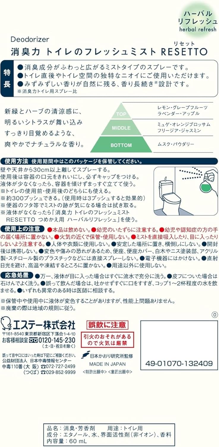 おはようございます。今日は消臭力トイレのフレッシュミストRESETTOのご紹介です。✼••┈┈••✼••┈┈••✼••┈┈••✼••┈┈••✼シュッと消す。パッと変わる。ニオイ空間が瞬時にフレッシュな空間へ●消臭成分がふわっと広がるミストタイ...