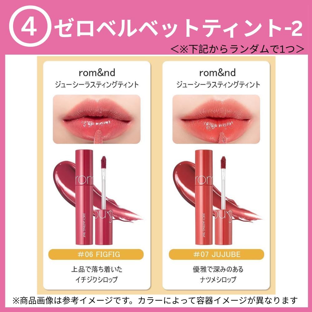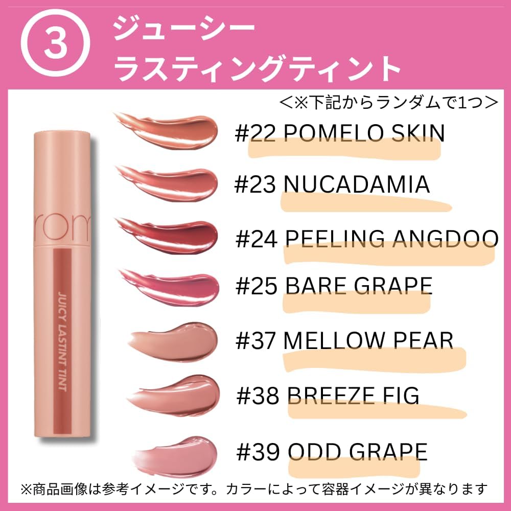 rom&ndフォーチュンメイクアップボックスランダムですが、参考までに入ってた色ジューシーラスティングティント#37mellowpear#23nukadamiaBareMoolTint#04watergrapeハンオールブロウカラ#03モダン...