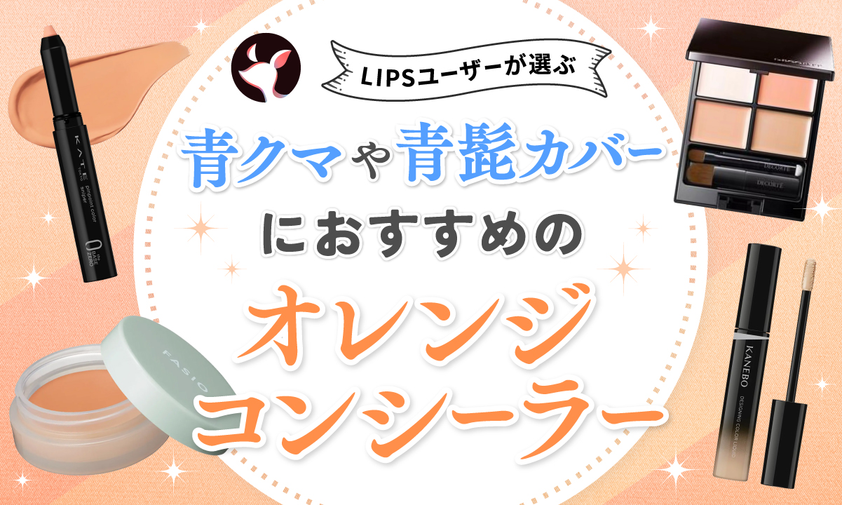 青の補色はオレンジなので、オレンジコンシーラーは青クマをカバーするのにぴったりです。血色感のあるオレンジを選ぶと自然に仕上がります。また目元に使うため、保湿成分が配合されているものを選ぶとよいでしょう。