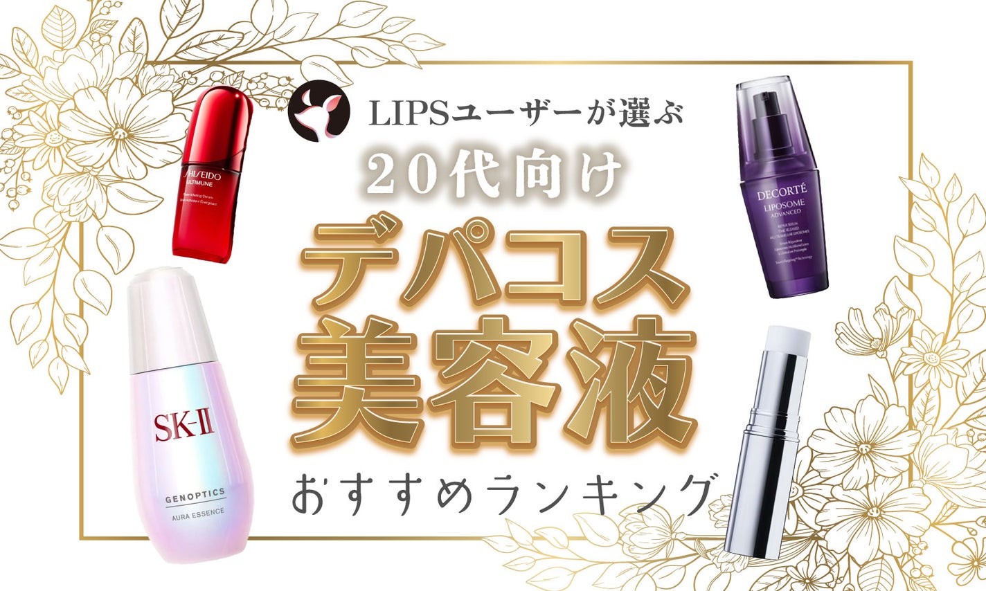 そこでこの記事では、LIPSユーザーさんおすすめの20代向けデパコス美容液をランキング形式&口コミ付きで紹介します。LIPSベストコスメ殿堂入りのアイテムやプレゼントに人気の商品もランクイン!40代・50代など幅広い年齢層に人気の商品が知りたい人や、5000円以下のプチプラ商品も気になる人は以下の記事をチェックしてみて。