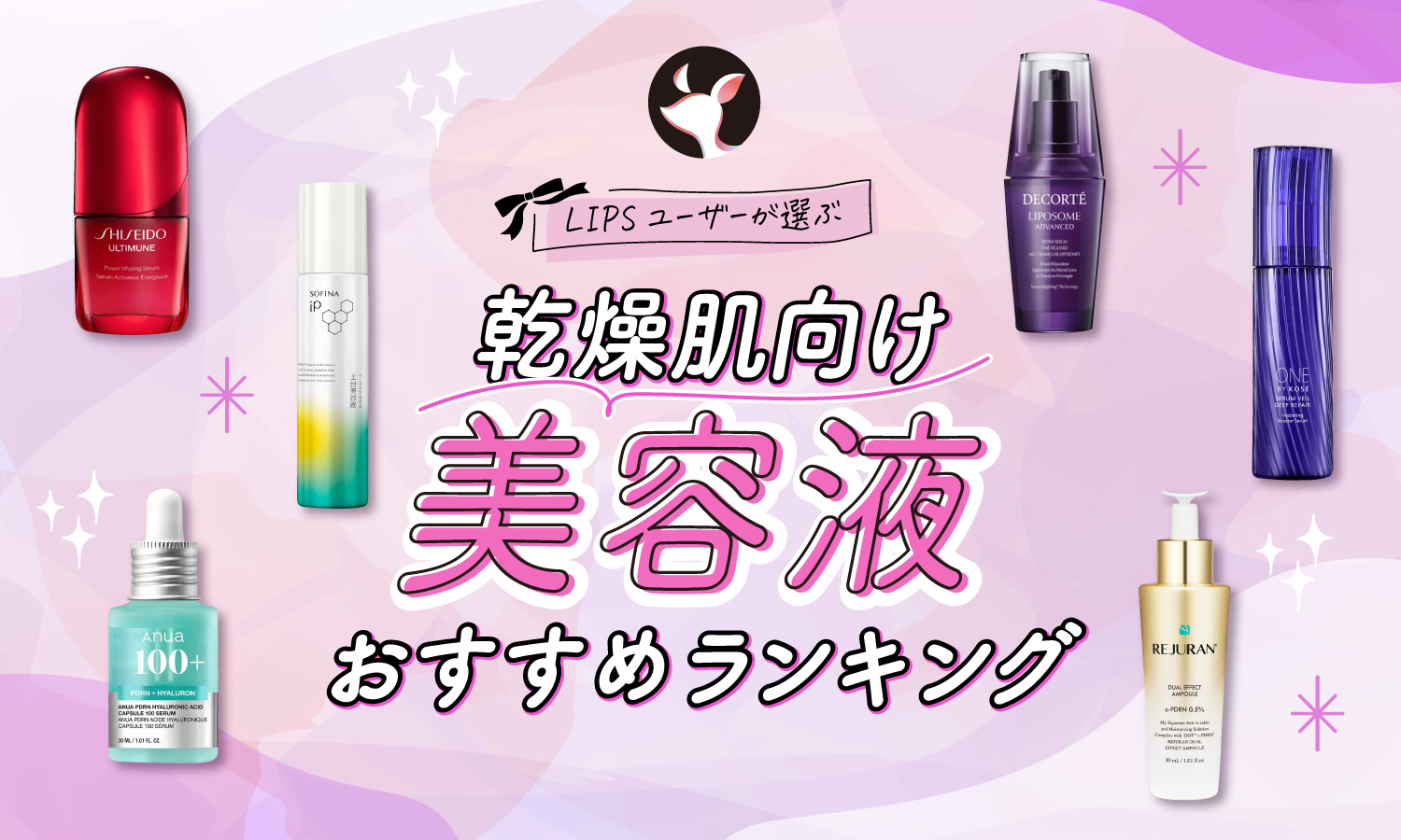そこでこの記事では、LIPSユーザーさんおすすめの乾燥肌向け美容液をランキング形式&口コミ付きで紹介します。韓国コスメの保湿美容液もランクイン!ドラッグストアでも購入できるプチプラやデパコスのおすすめも気になる人は以下の記事をチェックしてみて。