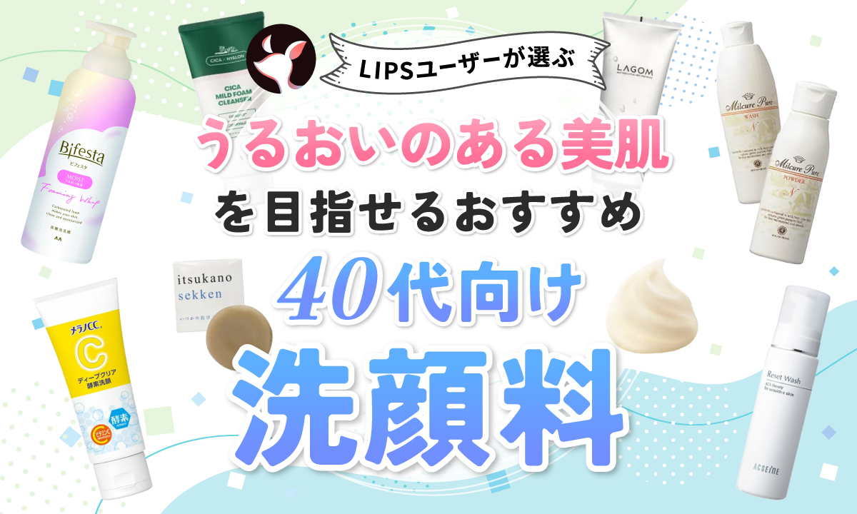 そこでこの記事では、ドラッグストアで購入できるプチプラからデパコスまで、LIPSユーザーさんおすすめの40代向け洗顔料をランキング形式で紹介します。40代に合った選び方や洗顔料の正しい使い方も解説しているので、ぜひ参考にしてください。