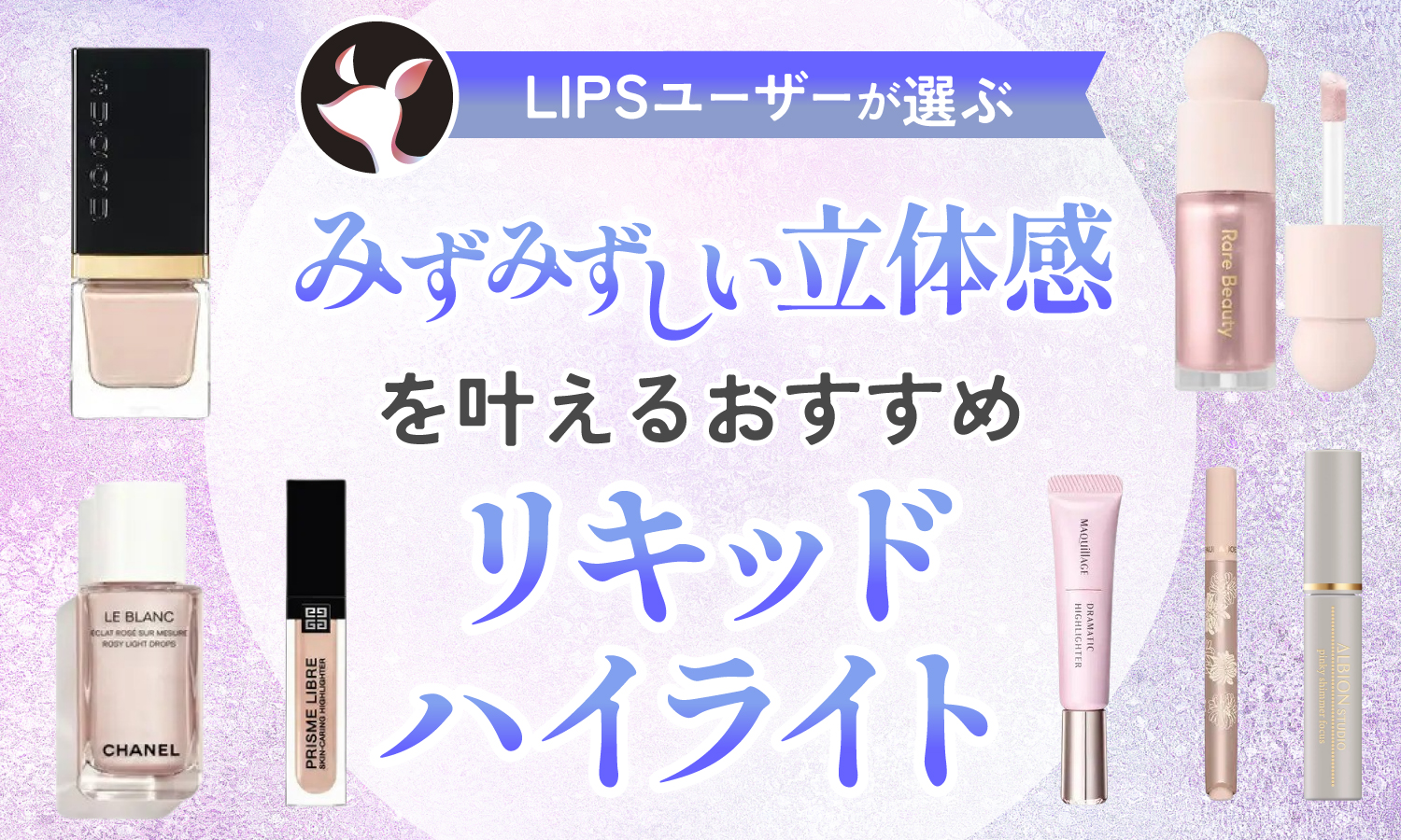 そこでこの記事では、ドラッグストアで購入できるプチプラ・デパコス・韓国コスメなど、LIPSユーザーさんおすすめのリキッドハイライトをランキング形式&クチコミ付きで紹介します。ヘア・メイクアップアーティスト監修のもと、タイプや色の選び方・使い方も解説しているので、ぜひ参考にしてください。