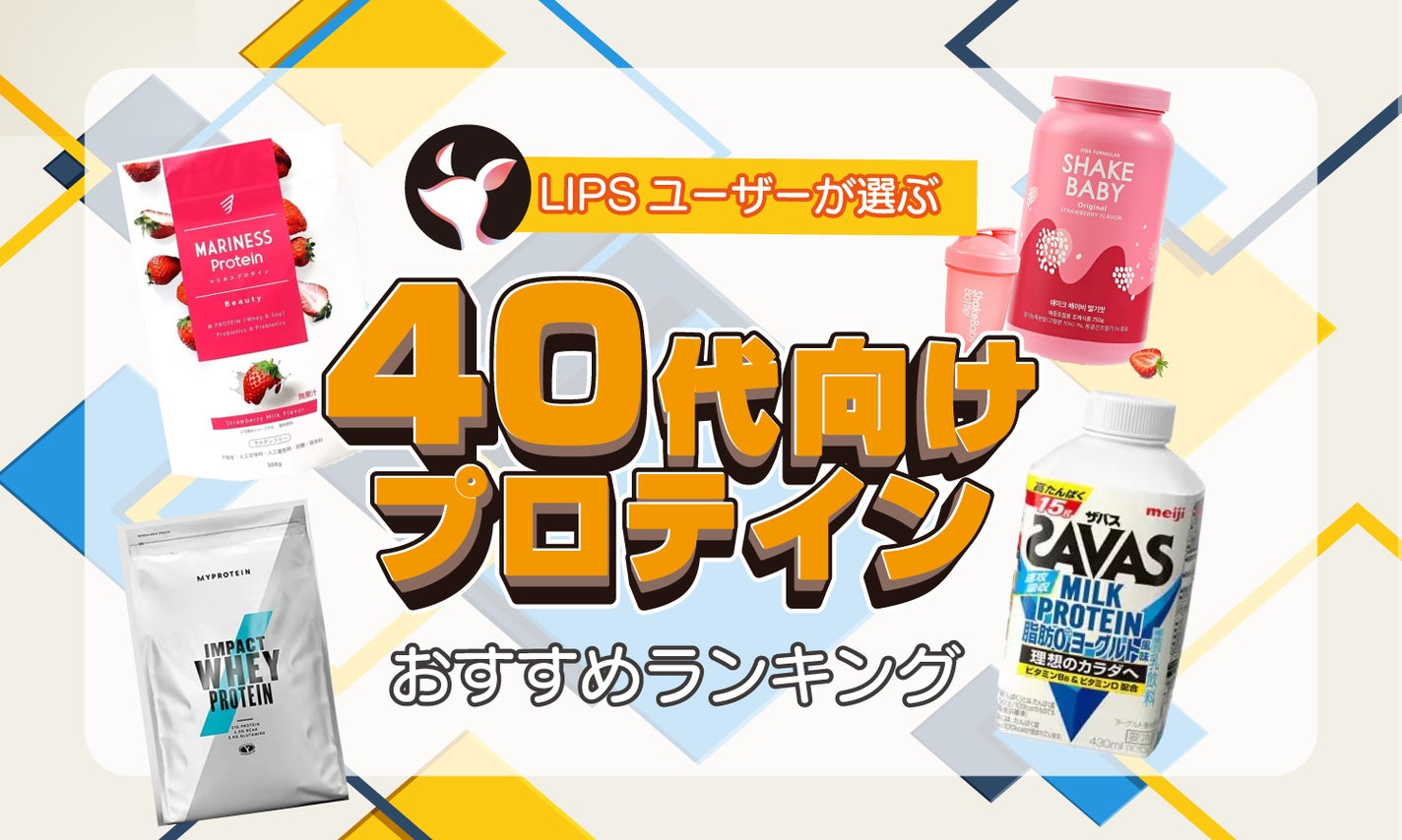 そこでこの記事では、LIPSユーザーさんおすすめの40代向けプロテインをランキング形式&口コミ付きで紹介します。ドラッグストアで購入できるものもランクイン!年代問わず人気の商品が知りたい人は、以下の記事をチェックしてみて。プロテイン初心者向けに選び方や効果的な取り入れ方も解説しているので、ぜひ参考にしてください。